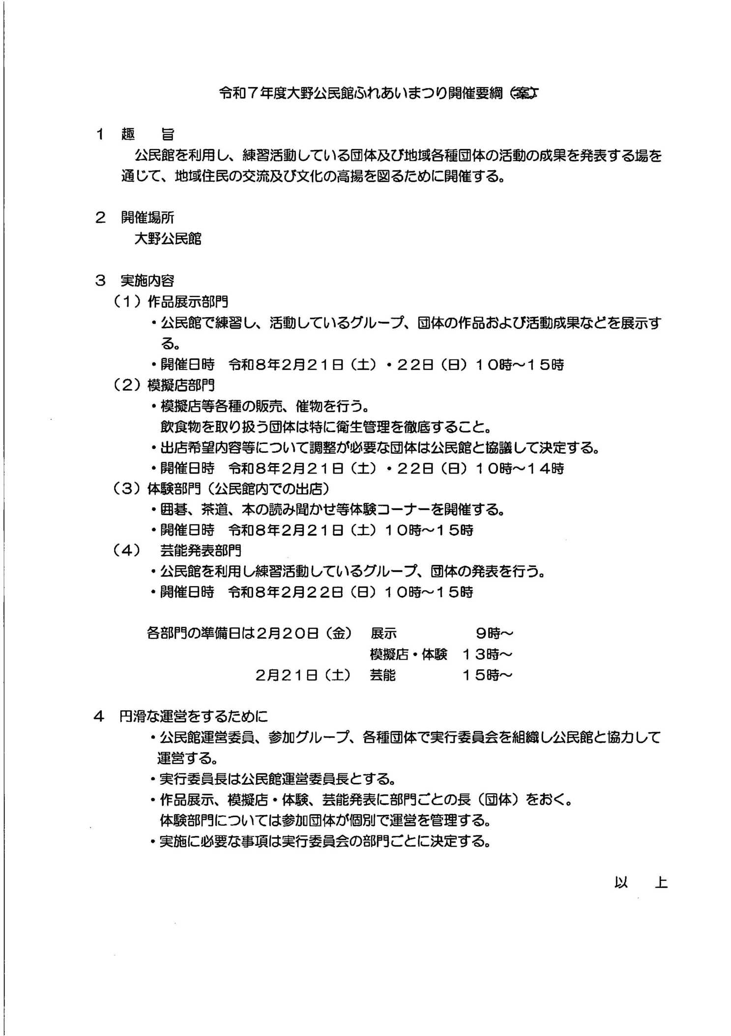 - 2025/12/02 芸能部門打ち合わせ会 大野公民館ふれあいまつり 1月16日(金)18:00 〜 大野公民館 A会議室 1階
