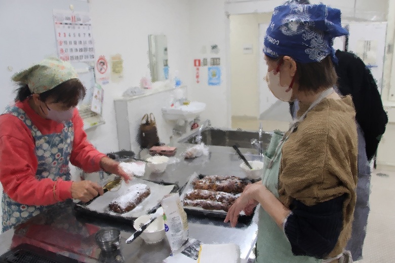 ■ 『ウインタースクール シュトーレンづくり教室』 ■ 大野公民館にて、シュトーレンづくり教室を開催しました! シュトーレンは、バターの入った生地にドライフルーツやナッツ、シナモン等各種スパイスを練り込んだ風味豊かなスイーツパンで、ドイツの伝統的なクリスマスのお菓子です。 今回は生地をドライイーストで発酵するところから作る本格的な教室でしたが、参加者の皆さんは楽しみながら各々のシュトーレンを作り上げることができました。 ※一部画像はプライバシー配慮のため加工処理しています。 オーブンで焼きあがる頃には調理室中にスパイスのいい香りが立ち込めました。 クリスマスに思いをはせながら食べるのが楽しみですね♪ (投稿掲載 大野公民館:DK) |