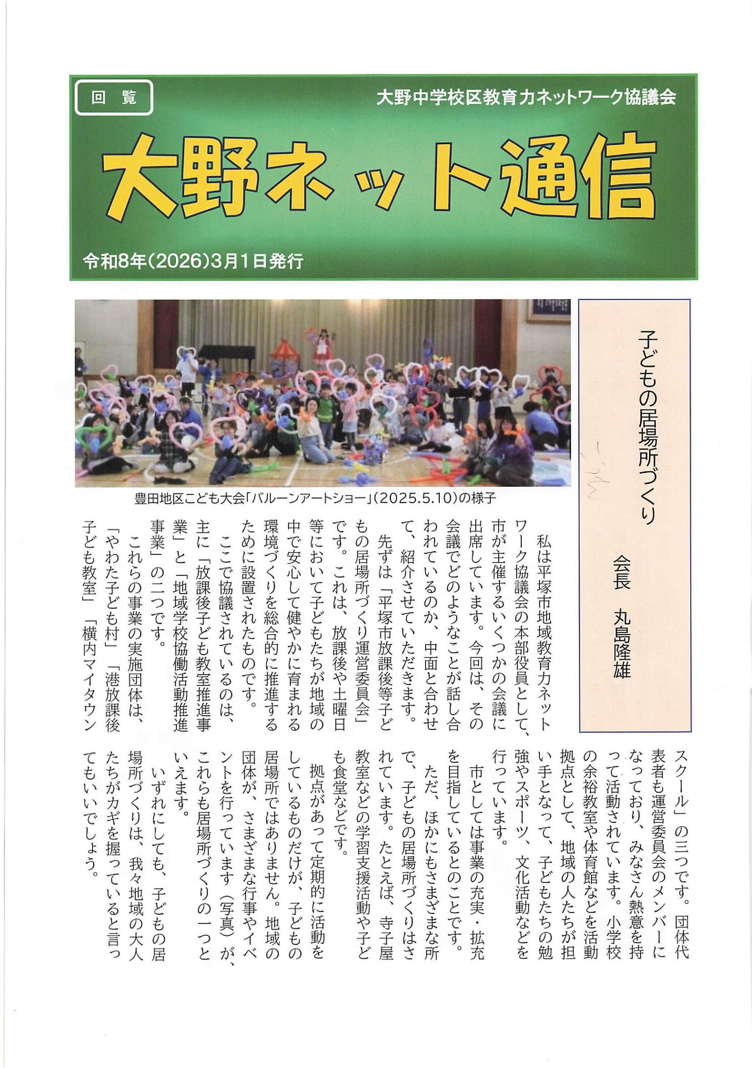 - 2026/03/23 大野ネット通信(令和8年3月1日)が発行されました 【回覧】