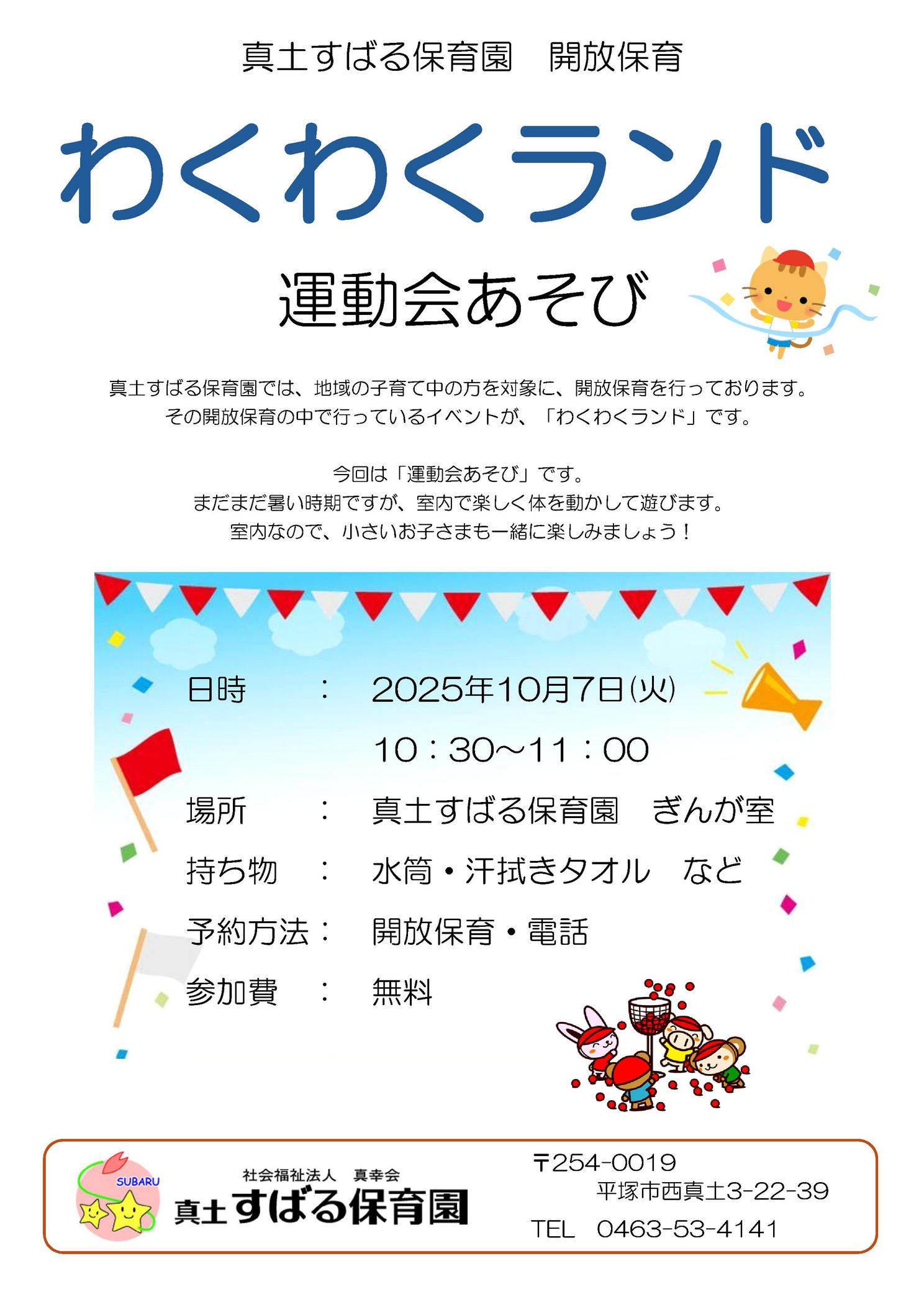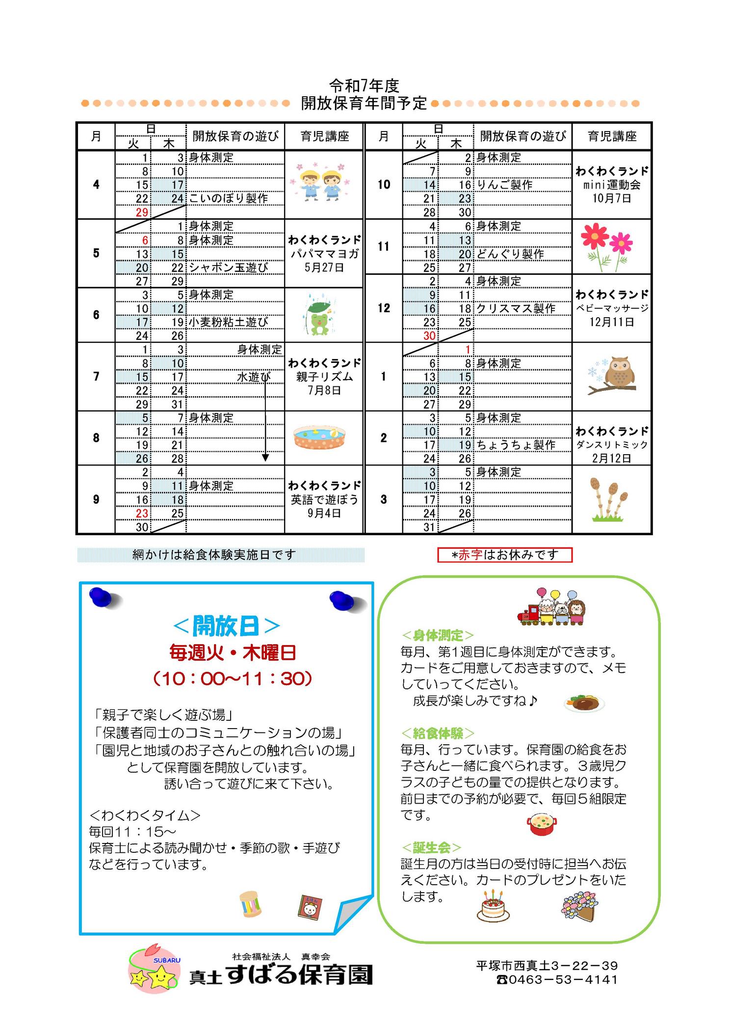 ※年間カレンダー 真土すばる保育園 令和7年度 開放保育年間予定