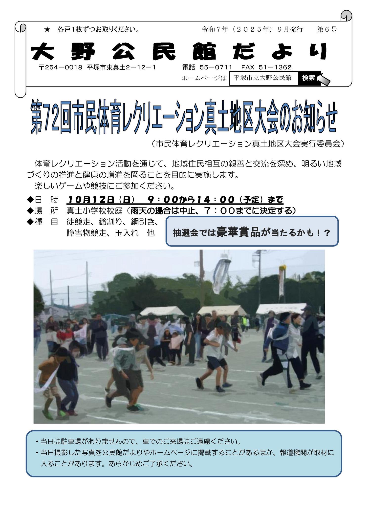 大野公民館だより 令和7年(2025)9月発行 第6号を掲載します