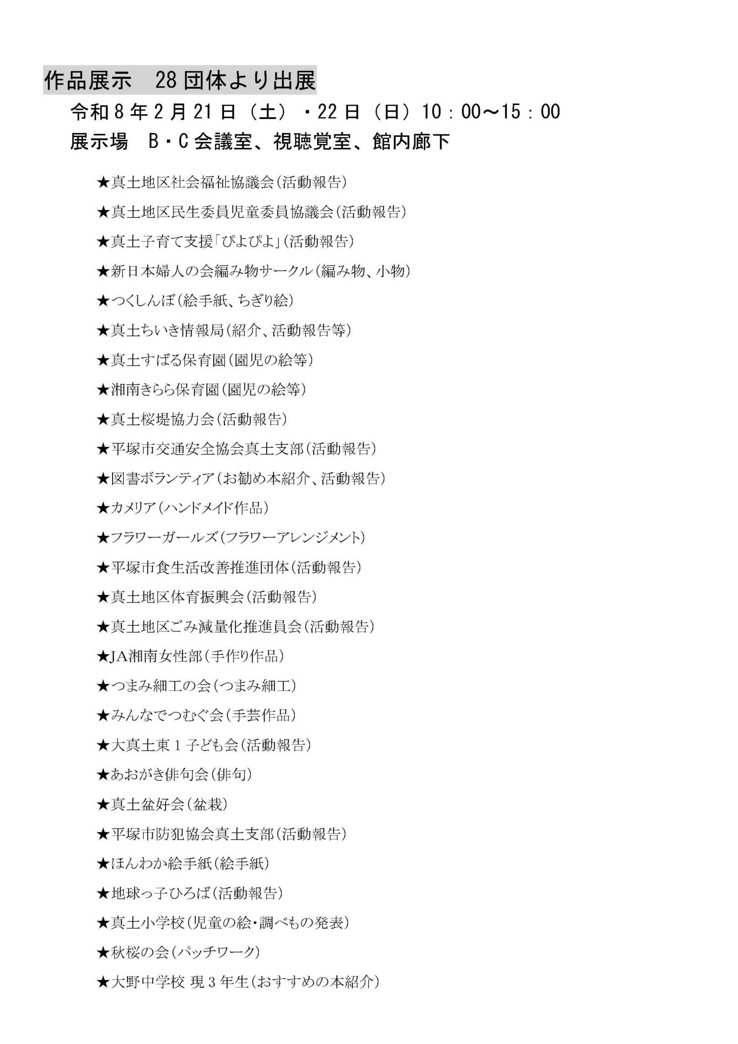 - 2026/02/19 大野公民館ふれあいまつりプログラム 令和7年度 開催日は令和8年2月21日(土)・22日(日)