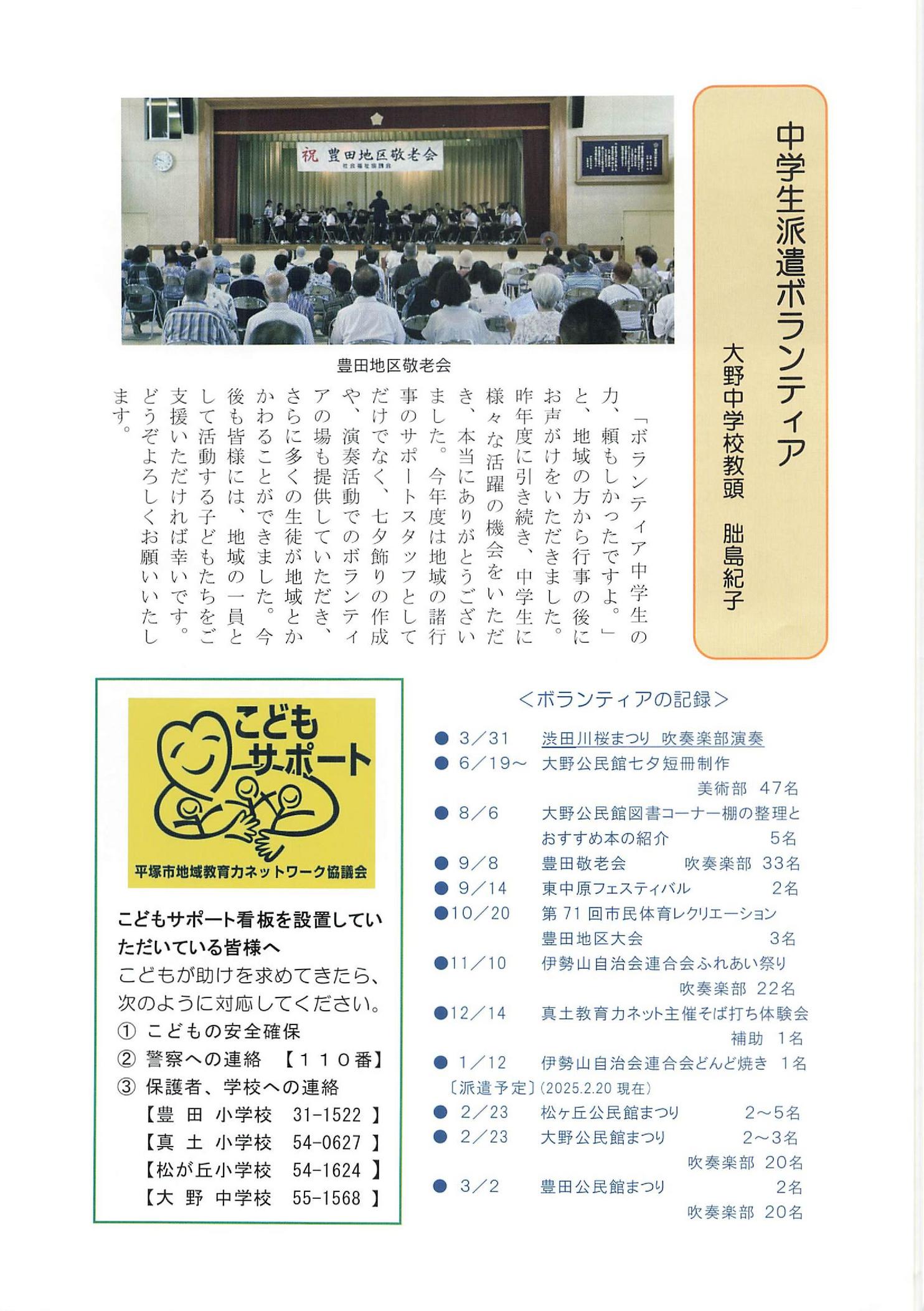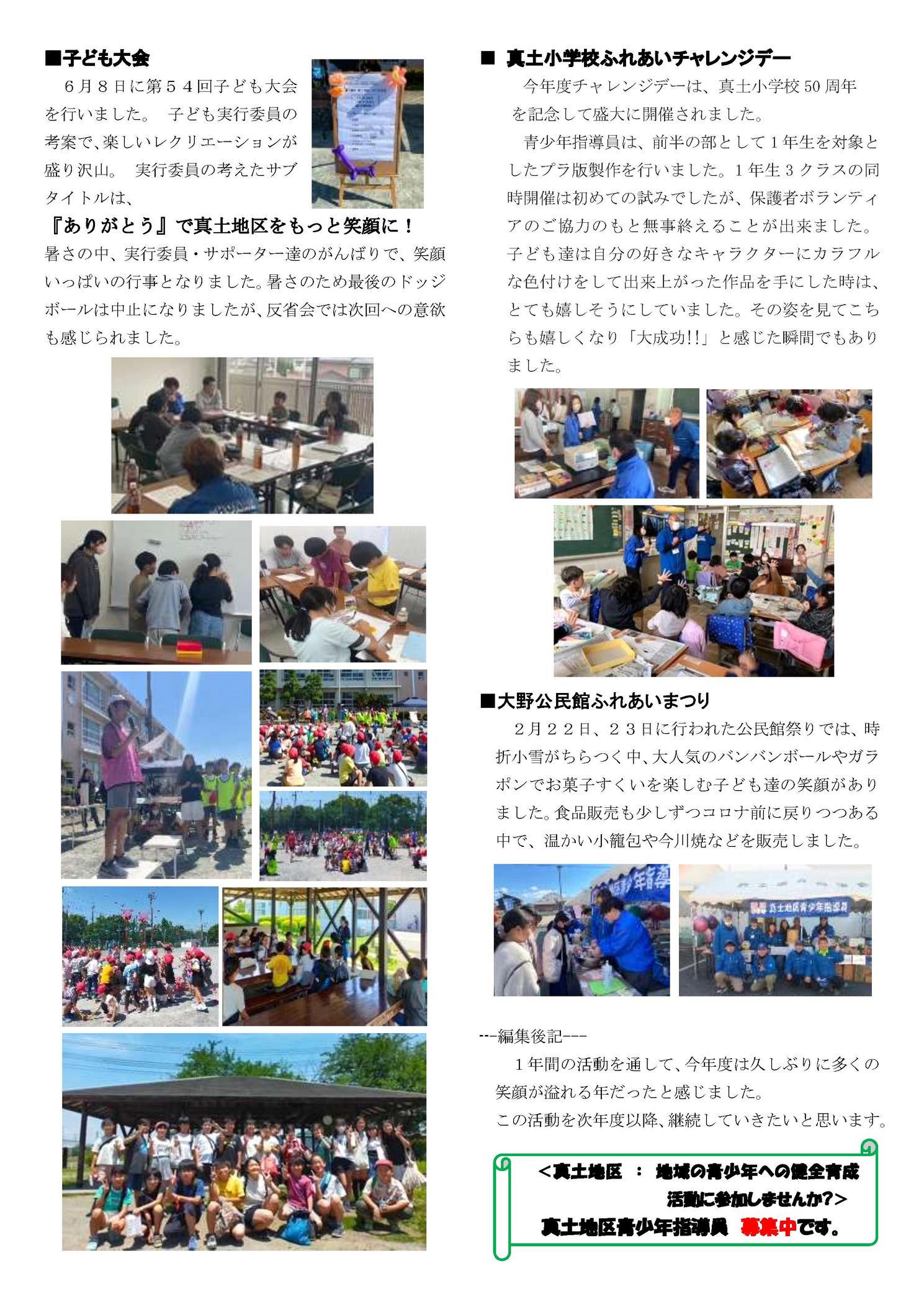 ■ 若い芽 第33号 真土地区青少年指導員協議会 2025年3月31日 ■ ■真土地区青少年指導員活動 ■大塚山公園祭り ■盆踊り ■真土教育力ネットワークの活動 ■子ども大会 ■真土小学校ふれあいチャレンジデー ■大野公民館ふれあいまつり (投稿: 真土地区青少年指導員MY 掲載:MT) |