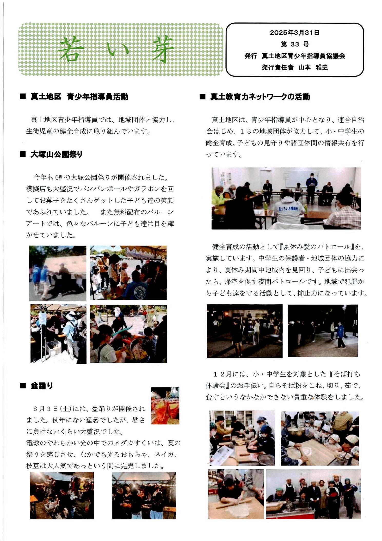 若い芽 第33号が発行されました 真土地区青少年指導員協議会 2025年3月31日