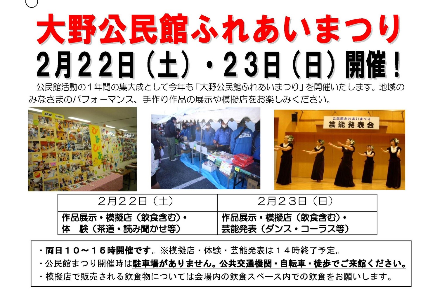 大野公民館ふれあいまつり2日目 2月23日(日・祝) 10:00〜