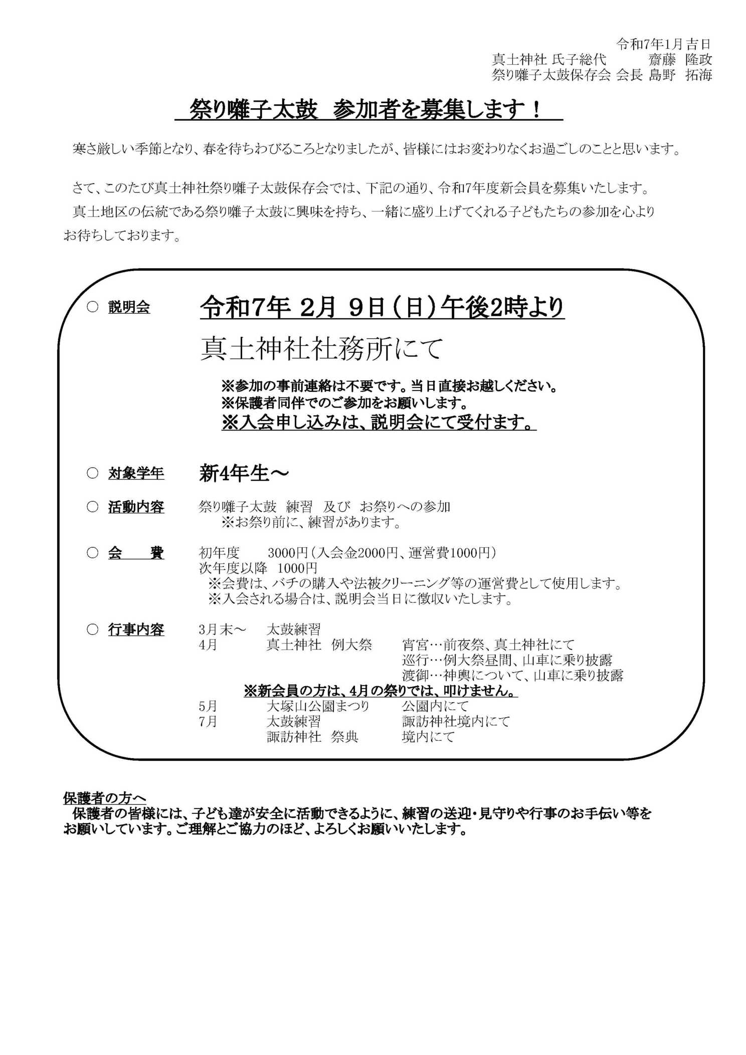 - 2026/02/17 眞土神社祭典実行委員会(第一回)結成について (ご案内) 令和8年2月28日(土) 19:00 〜 社務所