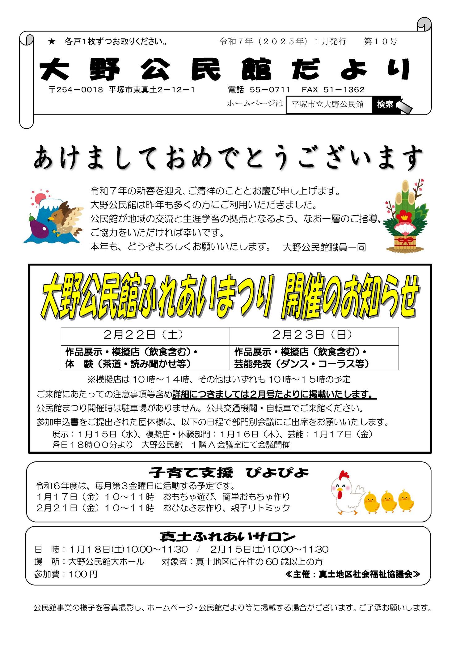 大野公民館だより 令和7年(2025年)1月発行 第10号を掲載します
