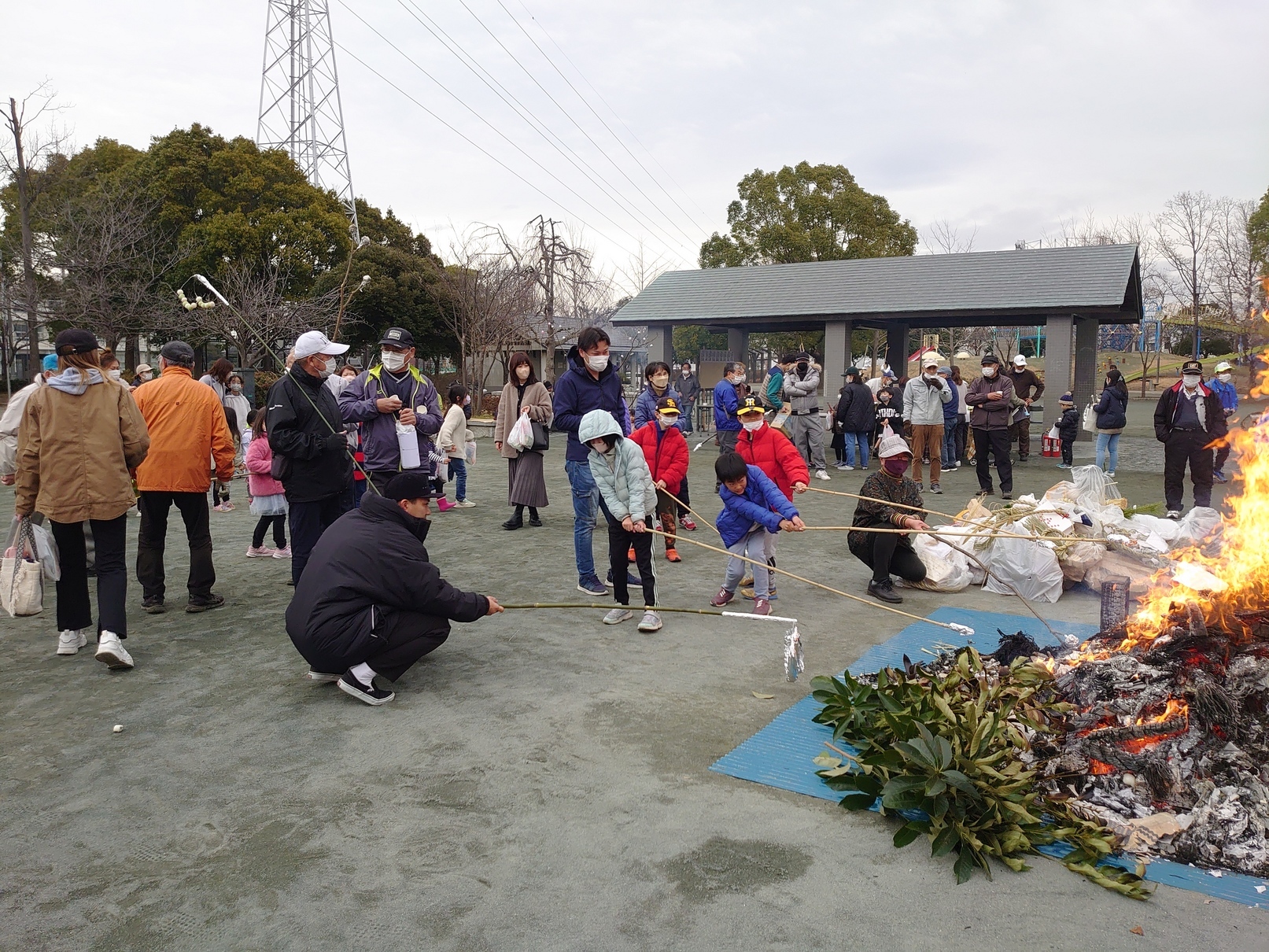 真土神社 令和5年だんご焼きの様子です 画像のクリックやタップで拡大表示します 令和7年は1月14日(火) 点火15:00