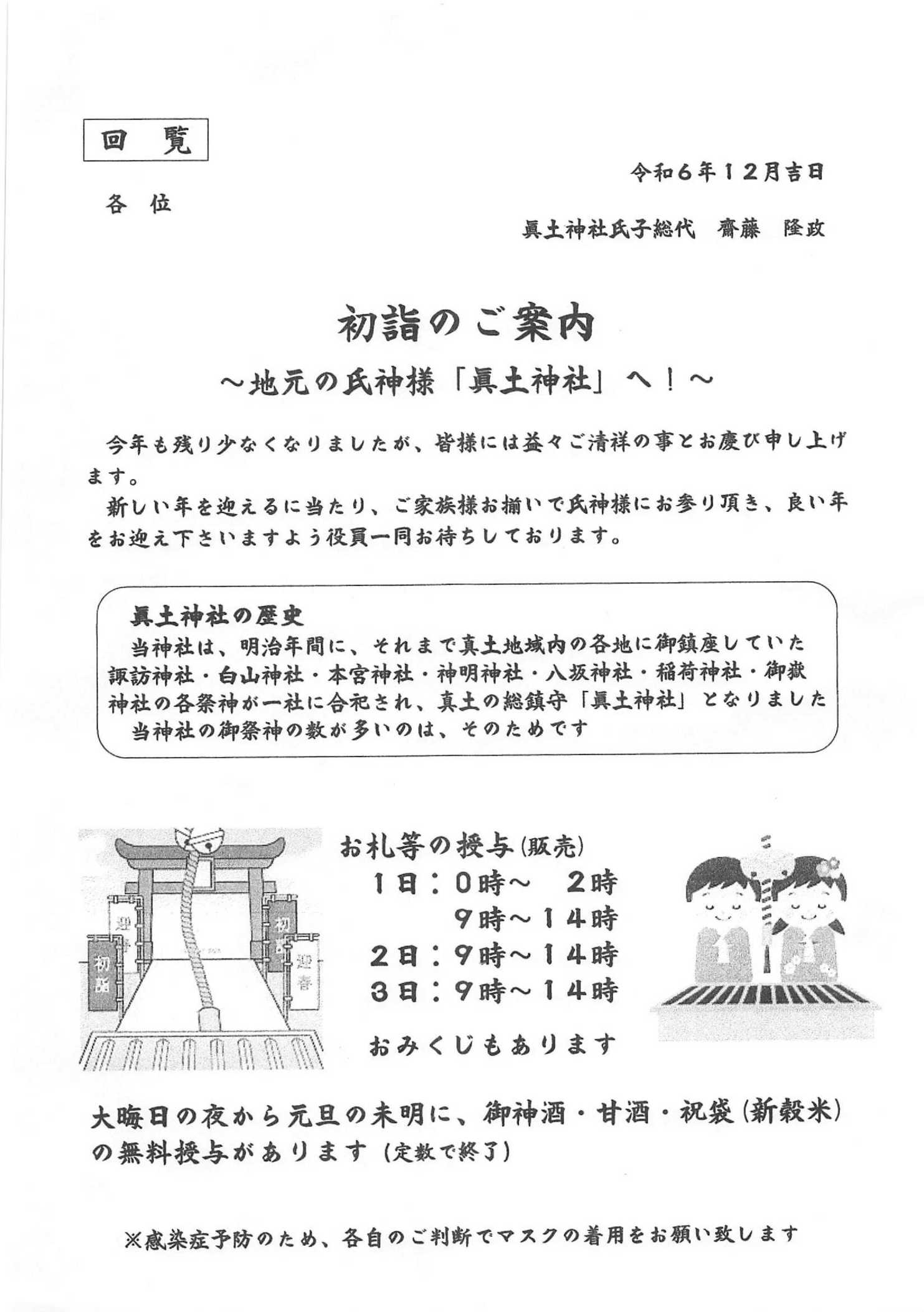 - 2026/02/17 眞土神社祭典実行委員会(第一回)結成について (ご案内) 令和8年2月28日(土) 19:00 〜 社務所