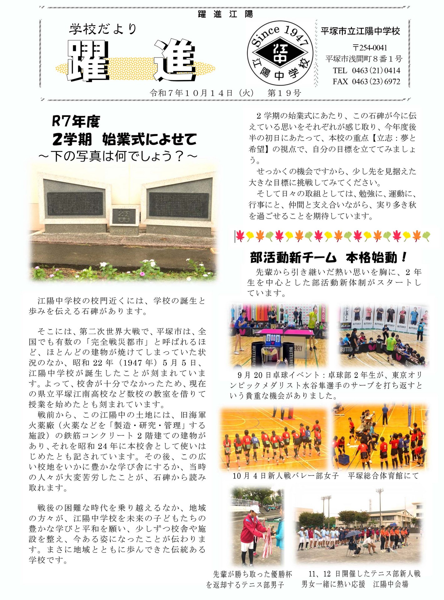 - 2025/09/27 江陽中学校 学校だより / 10月授業予定