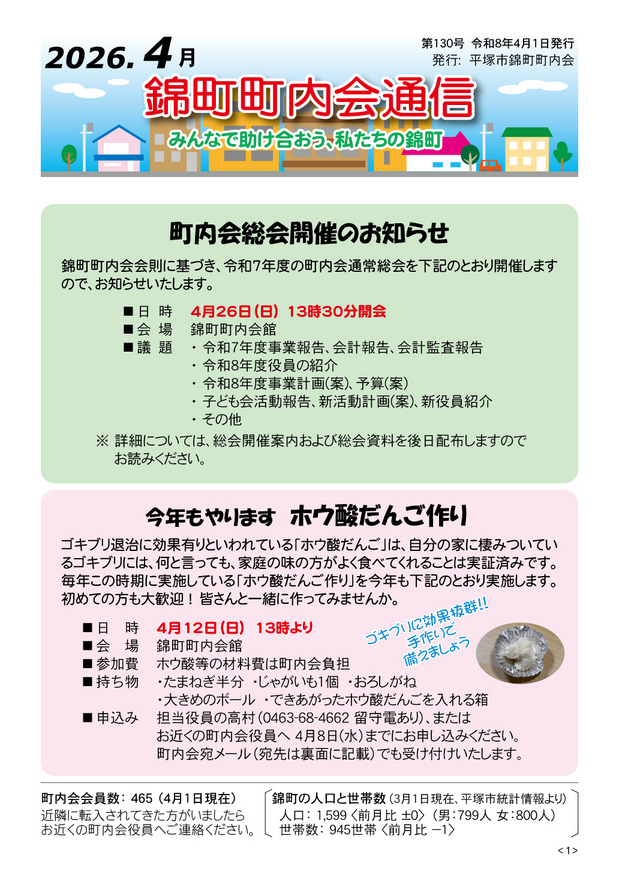 - 2026/04/08 錦町町内会通信 2026年4月号