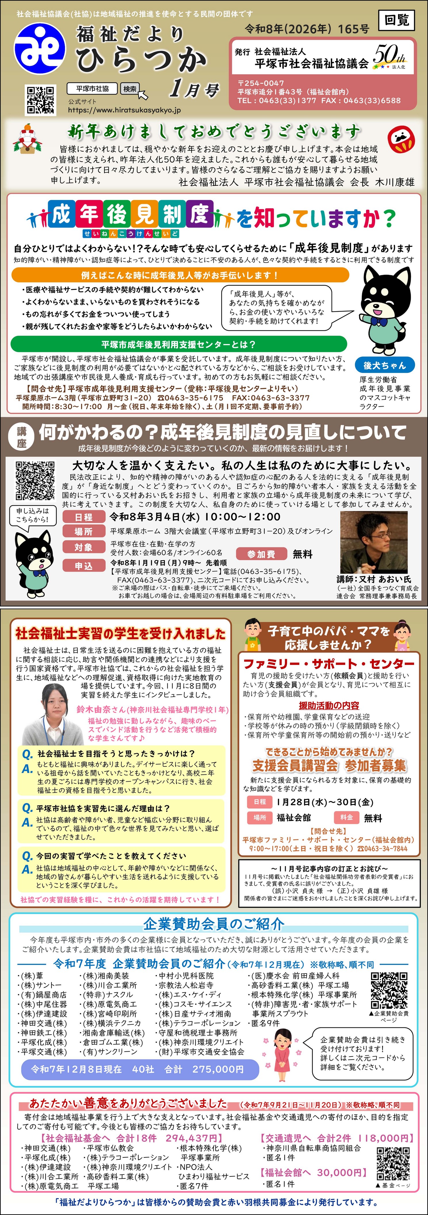 - 2026/01/06 【回覧板】福祉だよりひらつか 165号