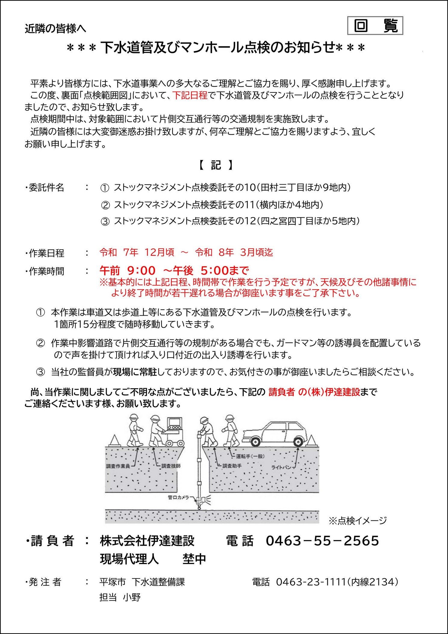 - 2026/01/06 【回覧板】下水道管およびマンホール点検のお知らせ