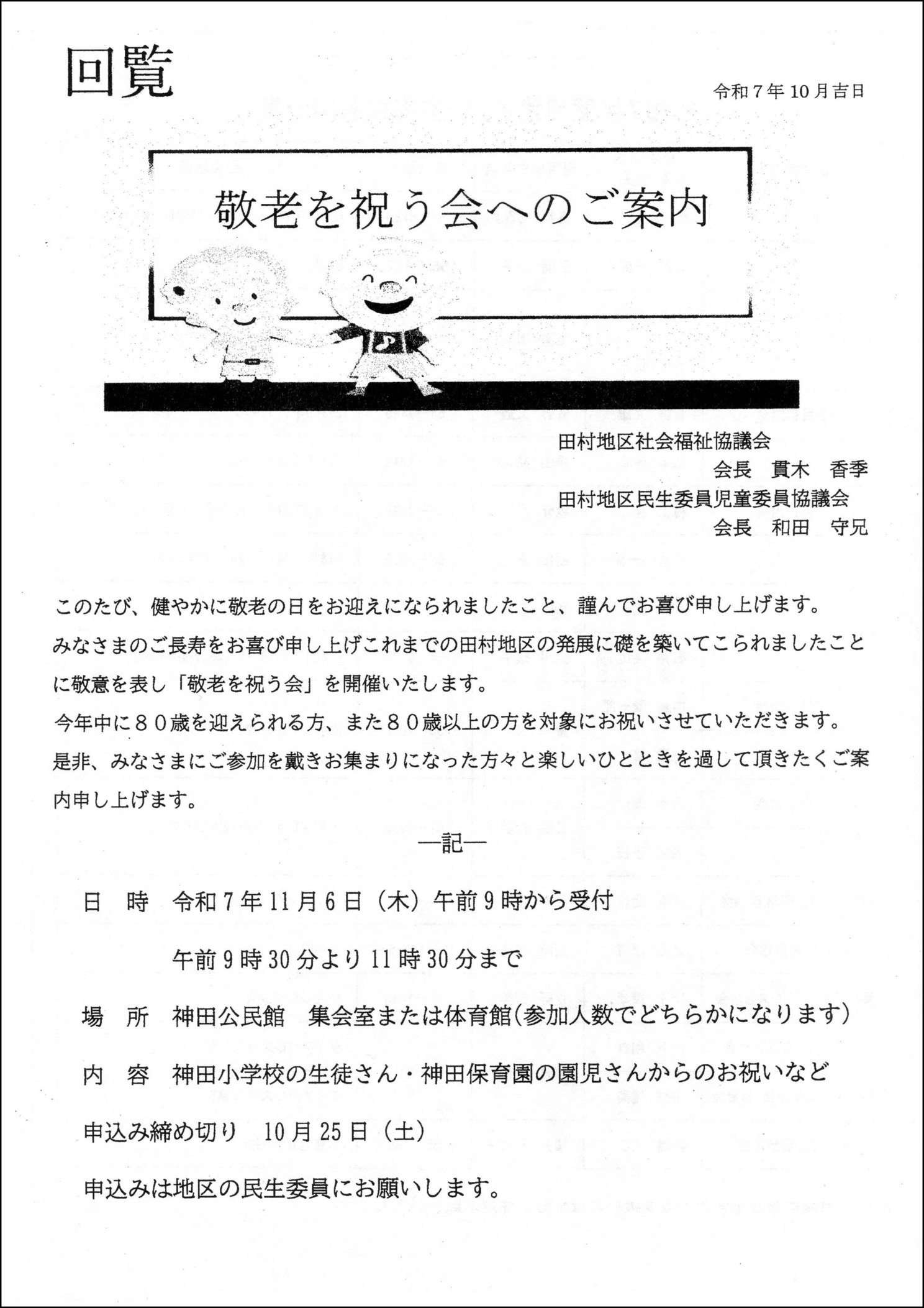 - 2025/10/03 【回覧板】敬老を祝う会へのご案内