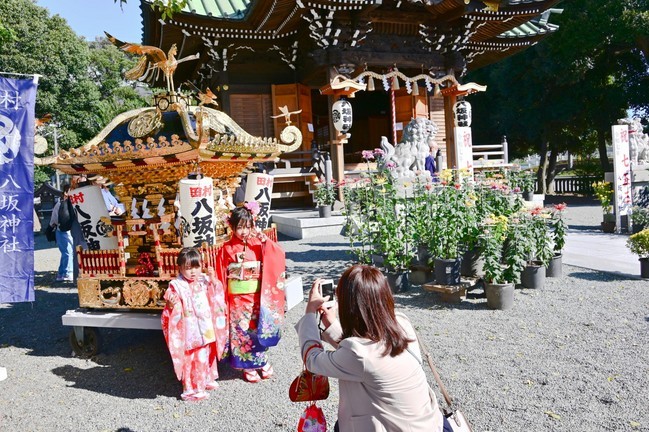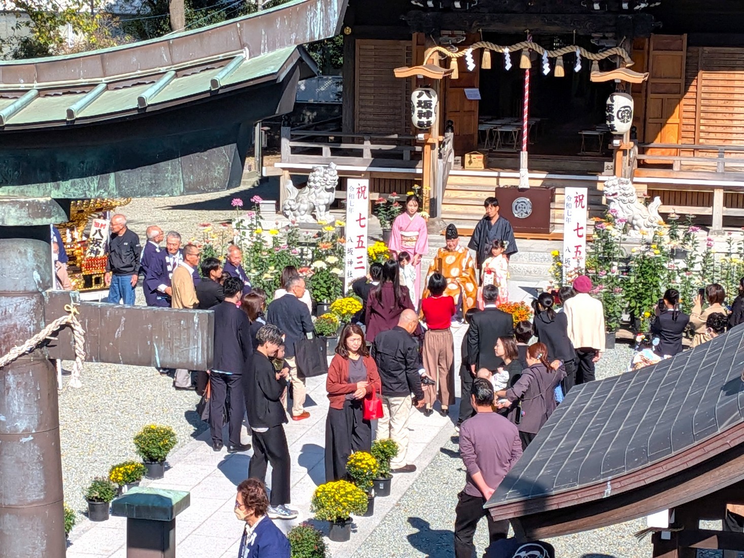 11月3日は八坂神社の七五三のお祝い。10時より拝殿で厳かに神事が執り行われました。神事の後は平塚市指定重要文化財の「田村ばやし」が今年で指定50周年の記念の年でもあり力強い太鼓の音、そして太鼓の音に合わせて舞う「印場踊り」などで地域を揚げて祝いました。境内では宮司さんとご家族ごとの記念撮影やご家族での記念撮影がアッチコッチで見受けられました。おめでとうございます!【七五三】神様への感謝とこれからの健やかの成長を願う日本の伝統的なお祝い行事。平安時代、子供が健康に育つ事を祝う儀式が起源とされ、やがて武家や庶民へと広まった。髪置き.3歳・袴着.5歳・帯解き.7歳の儀式。<河野>