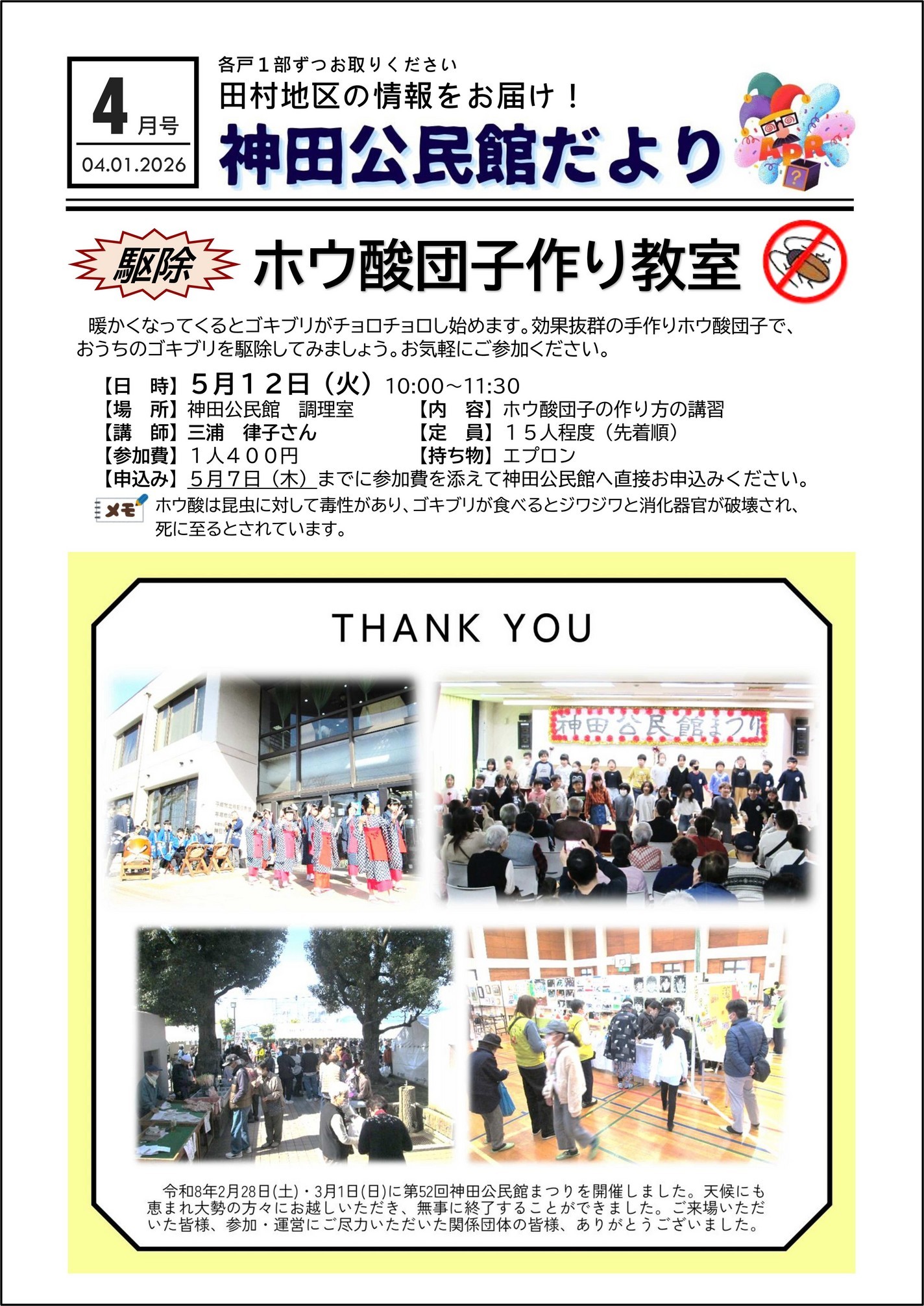 - 2026/04/09 神田公民館だより令和8年4月号を発行しました