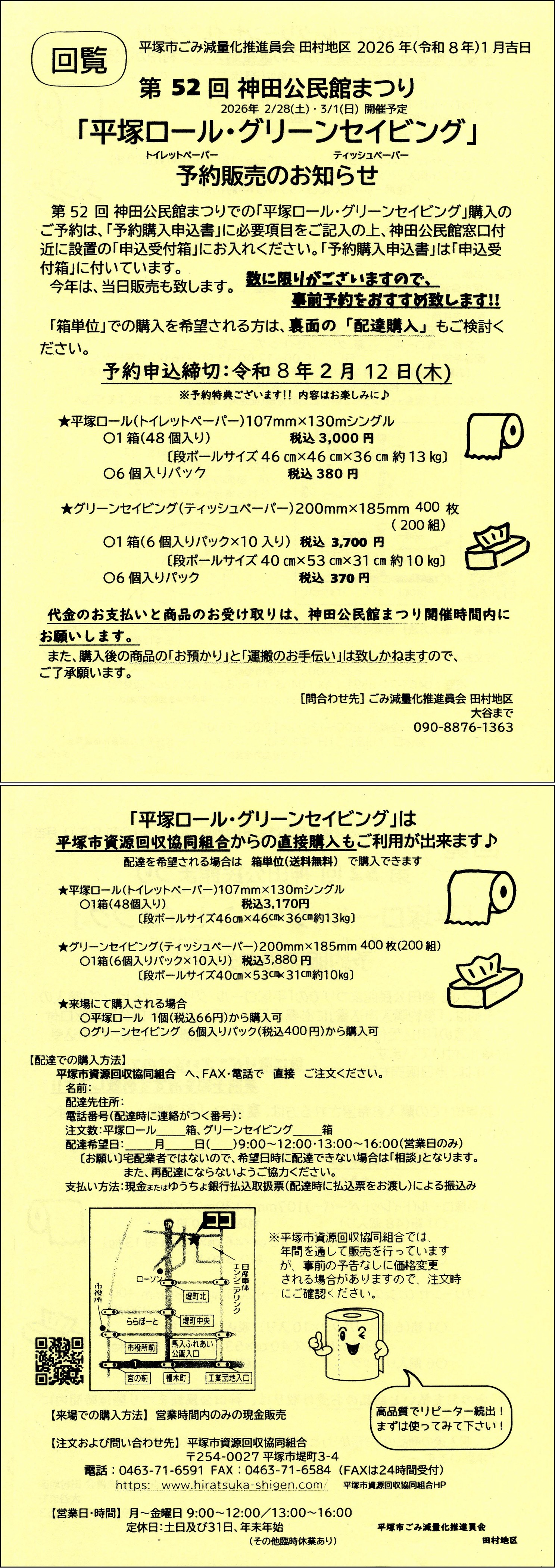- 2026/02/04 【回覧板】公民館まつり『平塚ロール・グリーンセイビング』 予約販売のお知らせ