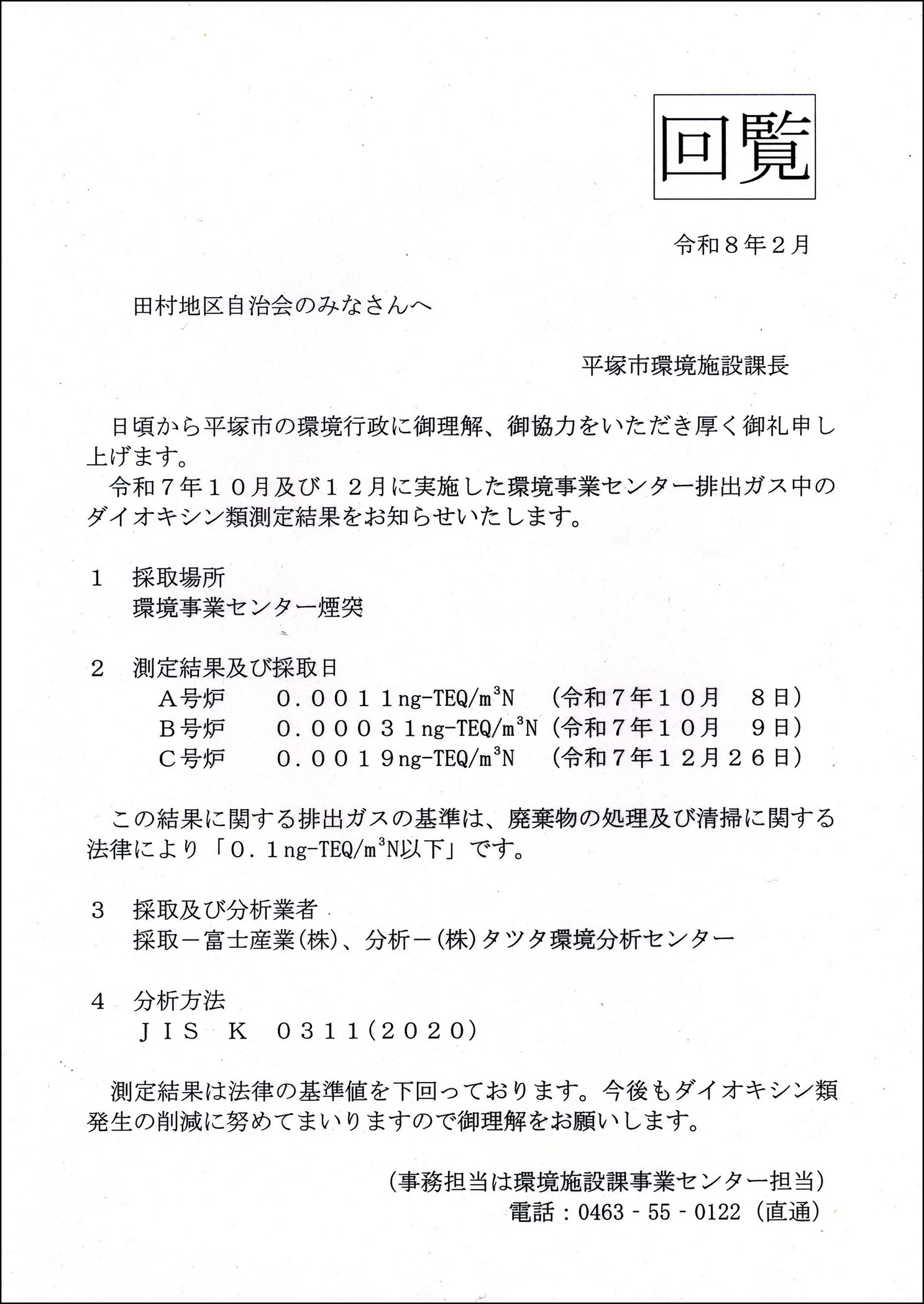 - 2026/02/17 【回覧板】環境事業センター排出ガス中のダイオキシン類測定結果