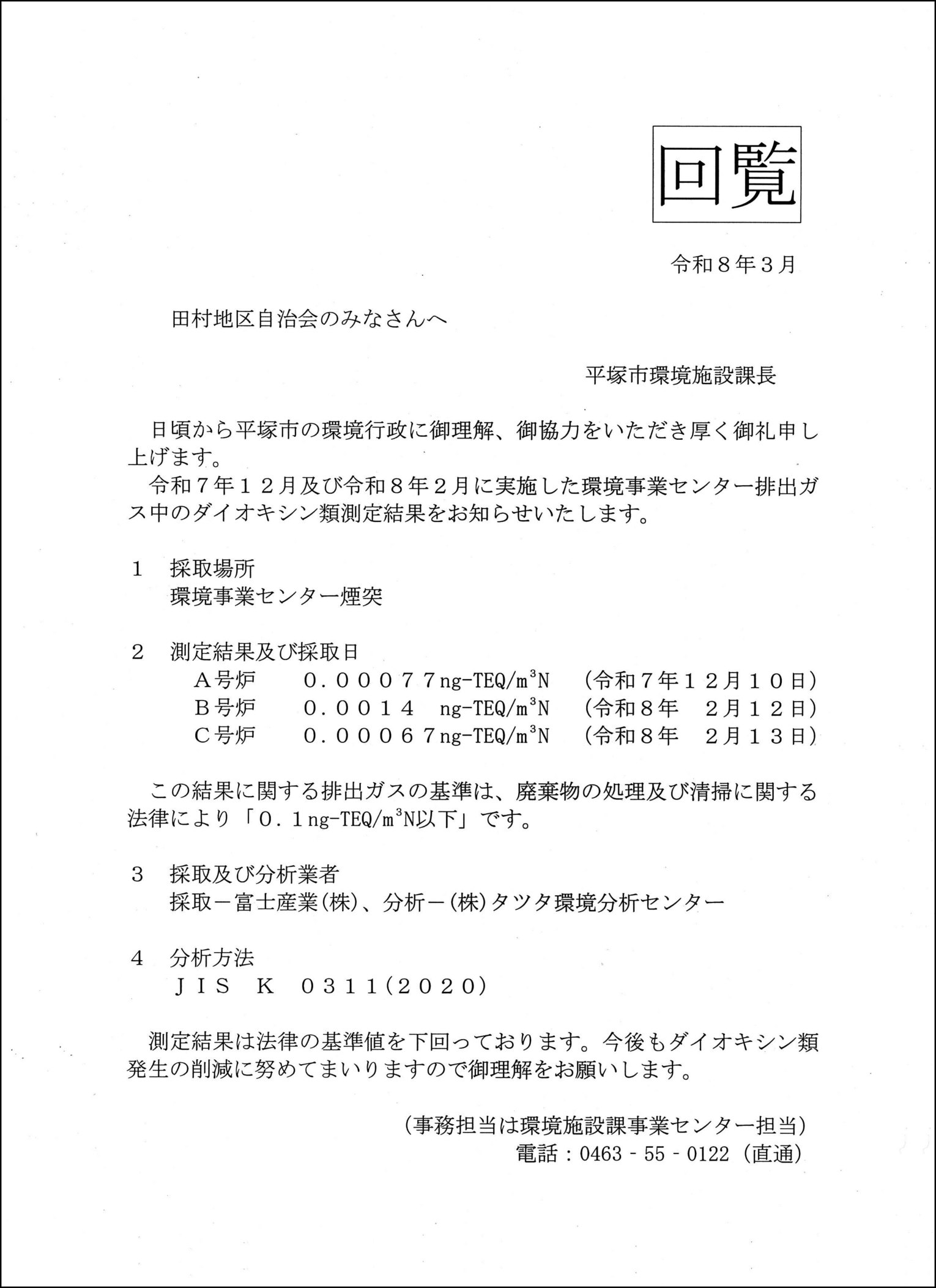 - 2026/03/16 【回覧板】環境事業センター排出ガス中のダイオキシン類測定結果