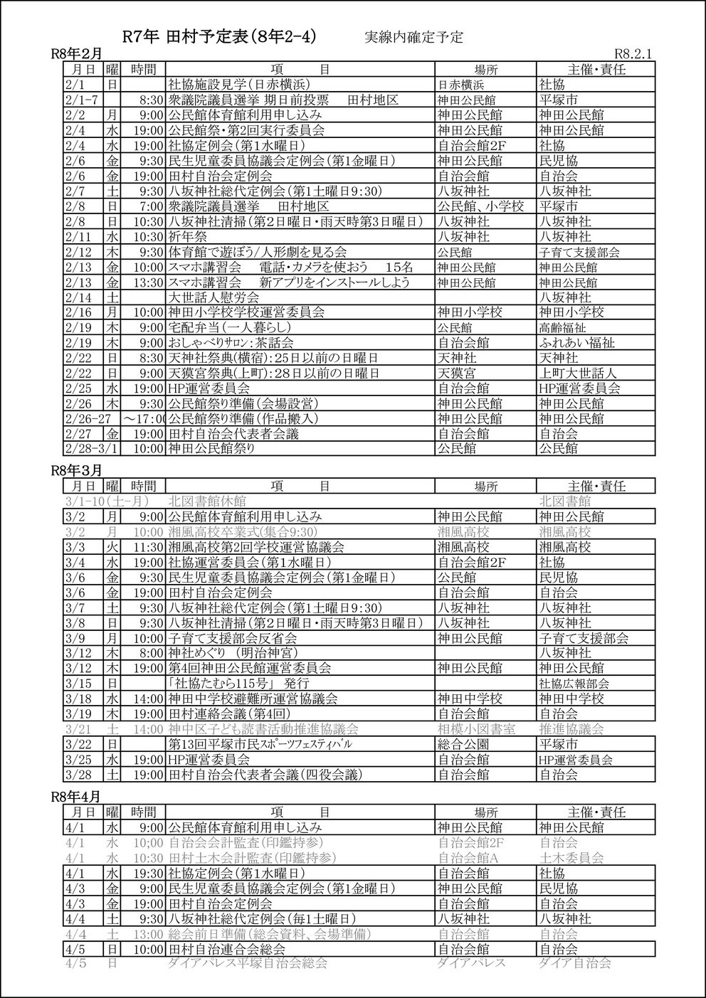 - 2026/02/01 田村地区 行事年間スケジュール 令和8年2月〜4月