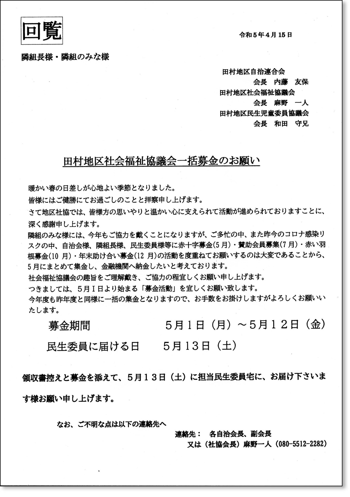 田村は平塚市の北東部・相模川沿いに位置し、西に富士・箱根・丹沢・大山を望む風光明媚な地域です。又、南北に国道129号が通り、自動車販売店・大型電器店・大規模商業施設等で賑わっています。古くは、田村通り大山道、八王子往還の継立場として繁盛し、更に「田村の渡し場」があり、交通・物流の要所として栄えていました。無形文化財の田村囃子と印場踊りや、鎌倉武将・三浦義村館跡等の旧跡もあります。明治22年に神田村となり、昭和31年に平塚市と合併し自治会活動、福祉活動、その他各種団体の地域活動も盛んです。地区には平塚市の聖苑(火葬場)があり市民生活に役立っています。
