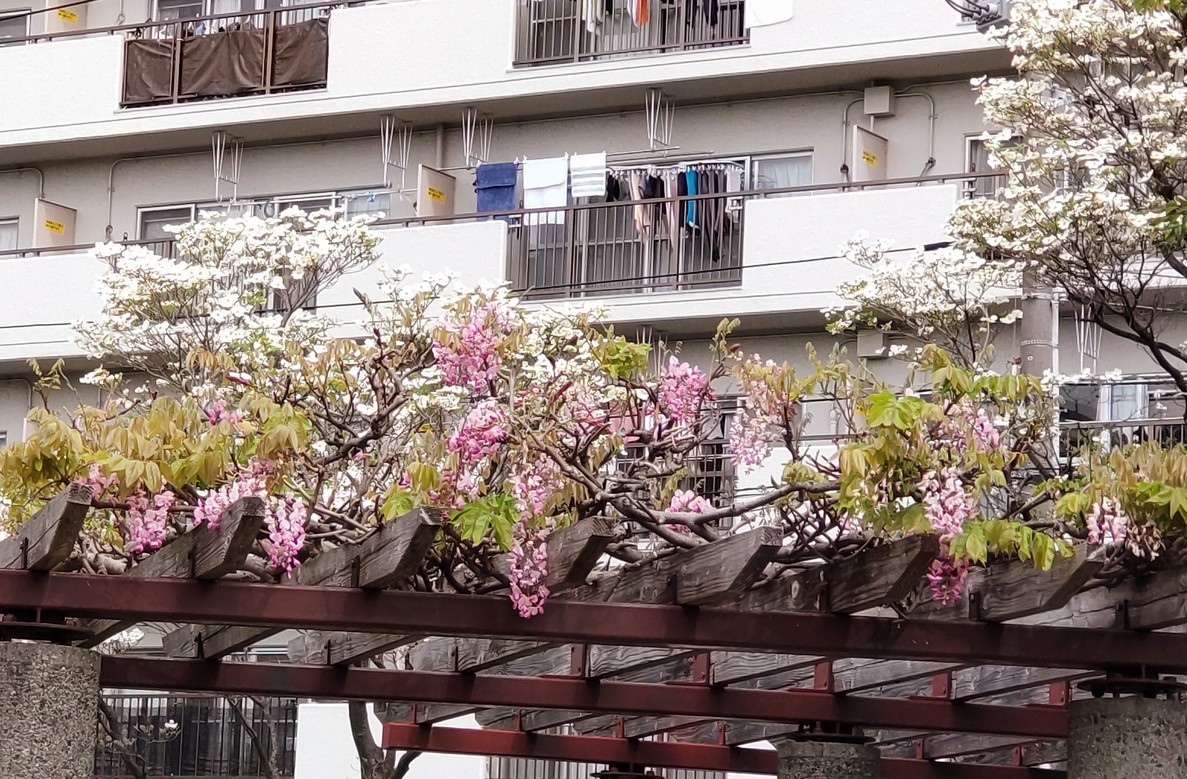 今年の春は例年よりも早く始まりました。いろいろな花たちは先を競うかの様に我も私もと咲き花盛りが続いています。春は色々な彩りが綺麗ですね。@Aは田村宮の前公園の藤とツツジ。BCは田村第二公園の藤とハナミズキ。 <河野>