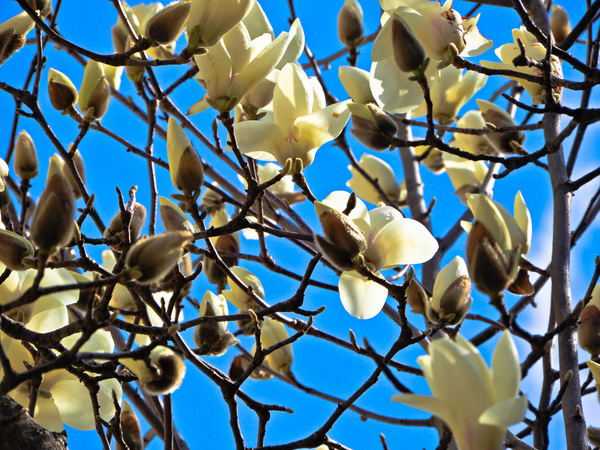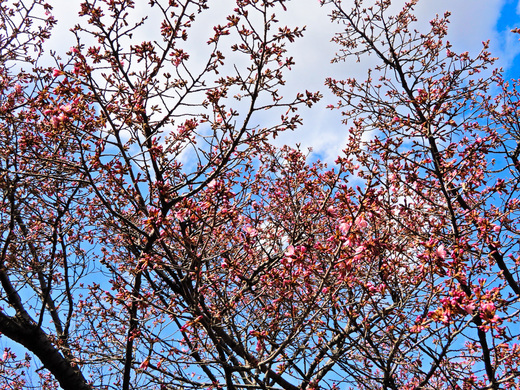 暑さ寒さも彼岸までと云われていますが3月に入り日差しも強くなりめっきり春らしくなりましたね。春は樹々や野花が一斉に芽吹き花も咲き彩り豊な風景になります。四季の始まりですね。@ロウバイA葉桜混じりの河津桜B咲き始めたヒカンサクラCモクレン。田村第一公園付近で。 <河野>