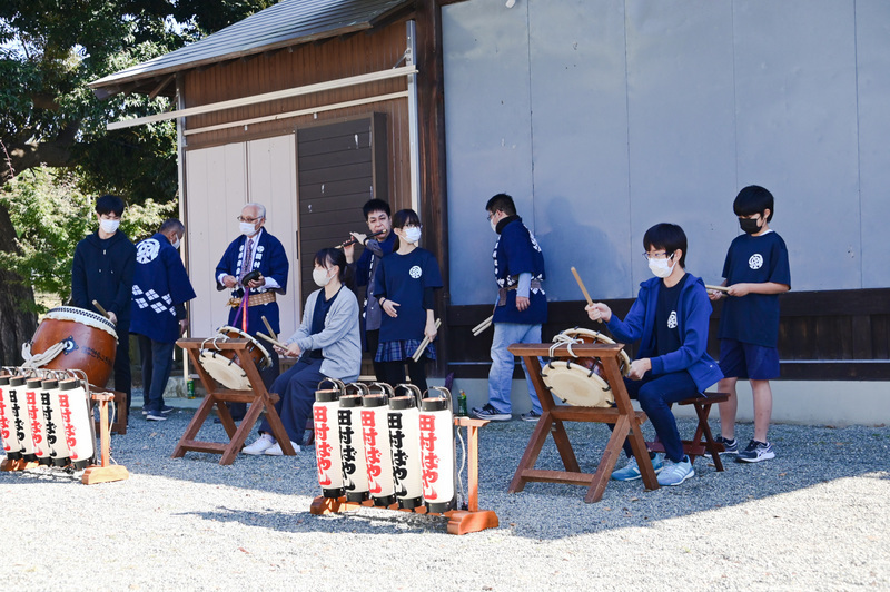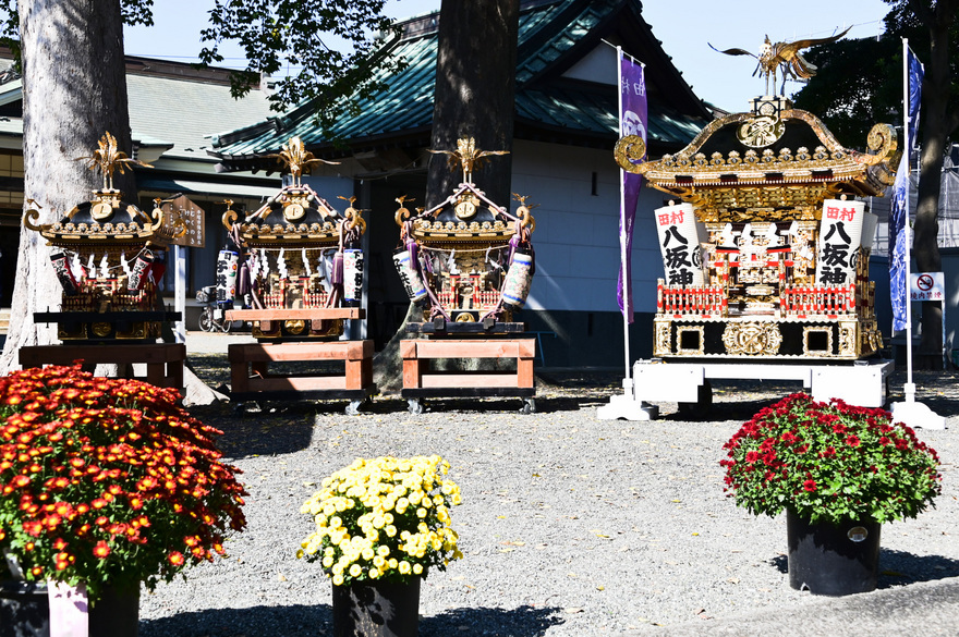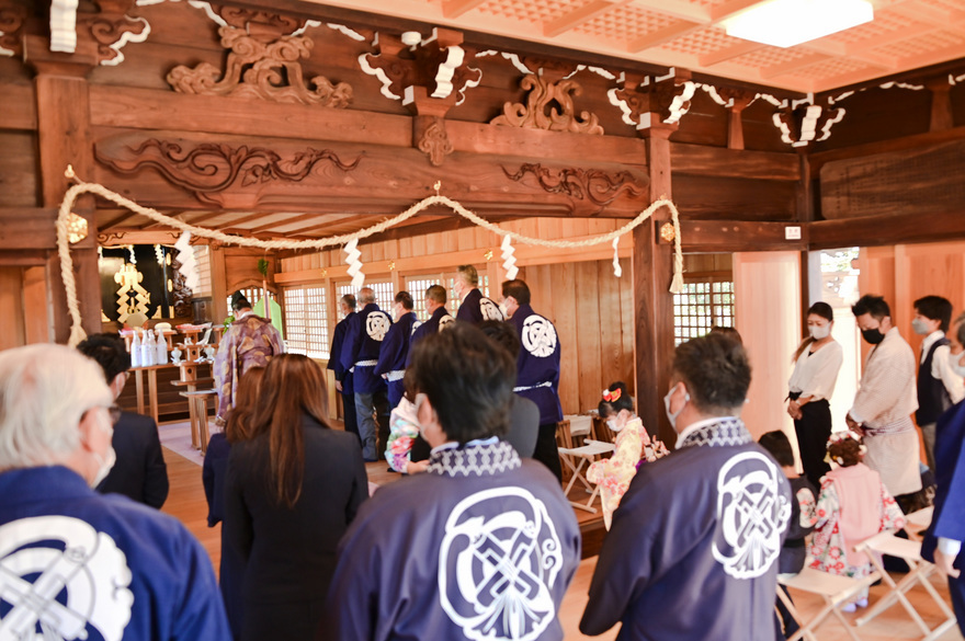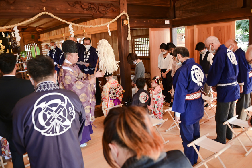 田村八坂神社では七五三のお祝い神事が執り行われました。七五三はお子様が無事に育ったことに感謝しこれからの健やかな成長を祝う伝統儀式で平安時代から続いています。拝殿での神事の後は平塚市無形文化財指定の「田村ばやし」の印場おどりと田村ばやしの太鼓の音で七五三を盛大に祝いました。またご家族方はそれぞれ神主さんと記念写真の撮影やスナップ写真を撮るなど境内はお祝いムードでいっぱいでした。自分も幸せムードに浸りました(笑)。<河野> |