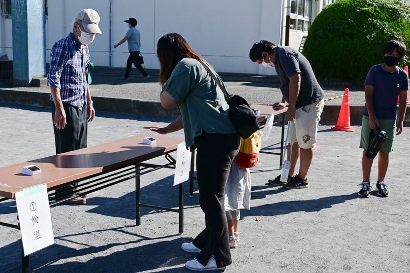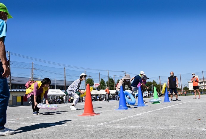 準備体操が終わり皆さん待ちに待った競技に突入です。 @サークルボールでパン。競技前半はスプーンでボールを運び後半はケツ圧でフーセンをパーン! ケツ圧低めの方は中々割れませんがこればっかりは高ケツ圧が有利ですね。Aパン運び競争。小さなお子達は箸を持つのが苦手? でもしっかり持って走りました。Bちょっこしバリア。いろいろなバリアをクリアーして走る競技ですが浮き輪を三角コーンに乗せる時は風にのせて上手にクリアーC数々の競技を楽しんだ後は全員で七夕おどりで〆ました。シルバー世代から若手そしてお子達の世代まで全員が笑顔いっぱいに楽しんだ一時でした。役員の方々有難うございました。 <河野> | ||