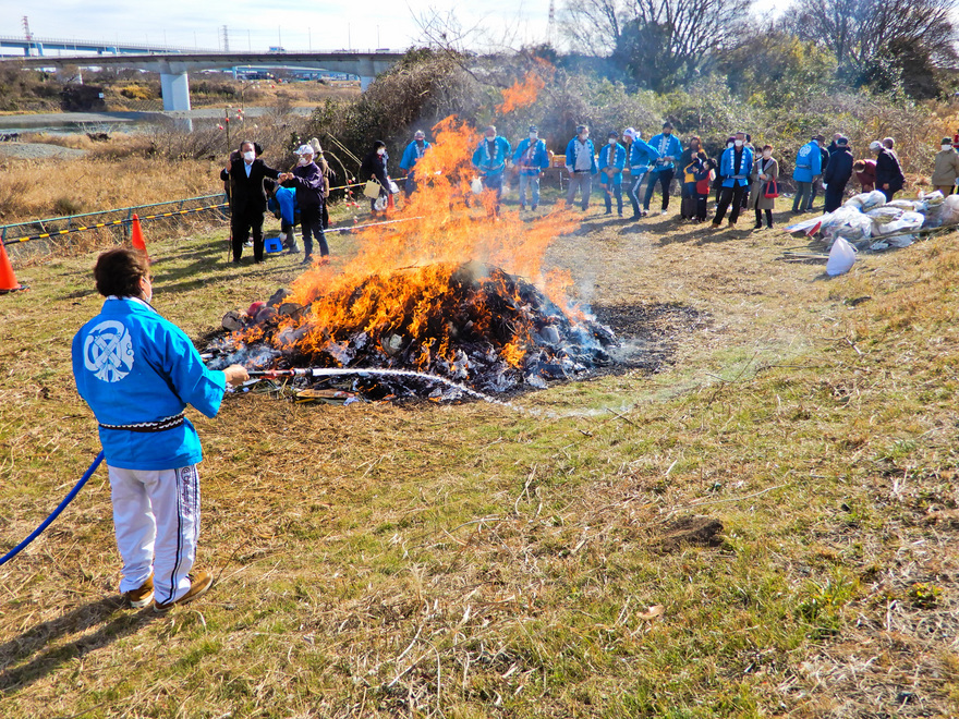 本日(15日)午後1時から八坂神社世話人さんの方々によりどんどん焼きが行われました。どんど焼きは豊作・商売繁盛・家内安全・無病息災・子孫繁栄を願う行事です。子供たちにはお菓子が配られました。又火災予防もしっかり行い枯草に延焼しない様放水しながら行われました。<どんど焼き>左義長・道祖神祭り・とんど焼き・鬼火焚きなど地方によって呼び方はいろいろありますが、実は左義長がどんど焼きの始まりで平安時代の宮中行事として1月15日の小正月の夜に行われていた火祭り行事です。(所説あり。一部Web引用)。 <河野>