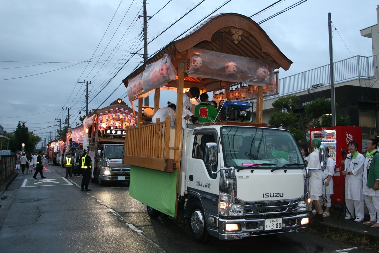 日 時 令和7年10月3日へ4日 AM 8:00へ 場 所 豊田八幡神社 令和7年、豊田八幡神社例大祭(本宮)が開催され多くの人が神社参拝に訪れていました。 3日の夜宮から始まりましたが今年は時々の雨が降っての例大祭になりました。夜になると各地区からの山車が神社前に勢揃いしての太鼓競演は素晴らしいものでした。本宮では各地区での太鼓の響きが一層大きくなり例大祭が盛り上がっていました。又、神社前には十数件の屋台が出てのかなりの人出が列を作っていました。午後5時には公民館前には地区から山車8台が勢揃い宮入が始まるのを待って、太鼓の音が鳴り響き最大の盛り上がりが始まりました。並んだ屋台が動きだし宮入が始まりました。約1時間を掛けての宮入が完了し太鼓の競演が始まり祭りの最大の見せ場となりました。祭の最後には雨は止んで最高の例大祭となりました。 (NE) |