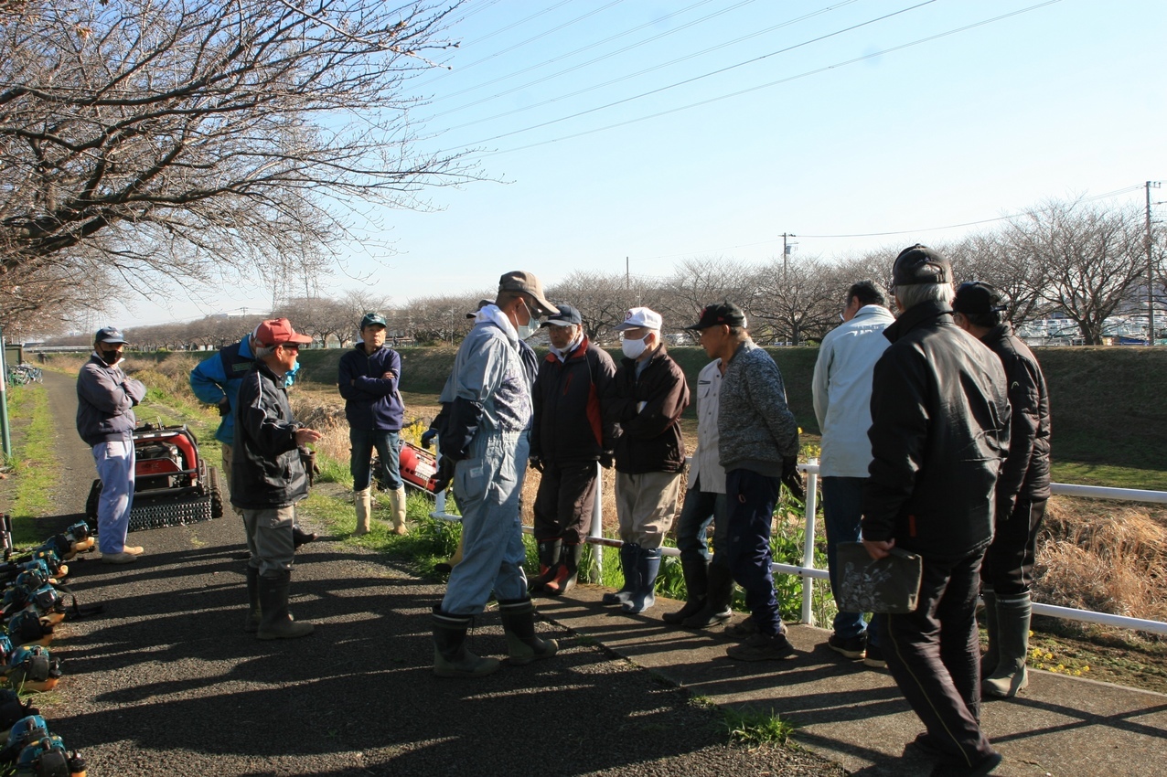 日 時 令和8年3月24日 (火)AM 8:00〜 場 所 渋田川西側土手(打間木防災倉庫前) 桜の会・令和7年度第4回渋田川草刈りが実施されました。豊田桜の会・会員18名が集合し草刈りが実施されました。2週間後のさくら祭り開催に向け朝からの草刈りが実施されました。先日の渋田川の桜の開花が有り、今日の桜も開花が進んでいました。4月4日(土) 5日(日)の祭りでは満開に当たり最大のさくら祭りが期待されています。会員の皆さんの熱の入った草刈りには成り、皆さん丁寧な草刈りとなっていました。草刈り終了後は会長から今年のさら祭りを皆で楽しみましょうの挨拶が有り、又、みんなで頑張ろうの拍手で終了しました。 (NE) |