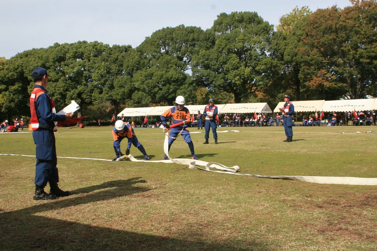 日 時 令和7年11月01日 (土) AM 8:30〜 場 所 平塚市総合公園 今年の参加者は第1分団〜第19分団までの平塚市全消防分団から参加が有りは会場はかなりの盛り上がりが有りました。前日からの準備が有り、大勢の来賓の皆さんも大会を見守りました。分団の各選手は日頃、操法の訓練をして今日の大会に臨んでいた為、大会はかなりの盛り上がりとなっていました。訓練競技順では、2組に別れ大会が実施されました。大会には審査員の合図でスタートが切られ競技が開催され審査員点数を付け最終競技が終わり成績発表となりました。前回最優秀賞分団(第18分団・岡崎分団)kの2連勝はなりませんでした。今回の表賞には豊田分団(第M分団)は優良賞を戴けました。選手の皆さんお疲れ様でした。応援で参加された分団の皆さんは、次回の大会には最高の賞を手にしたいと皆さん拍手して盛り上がっていました。 (NE) |