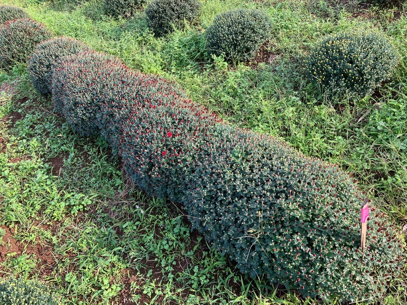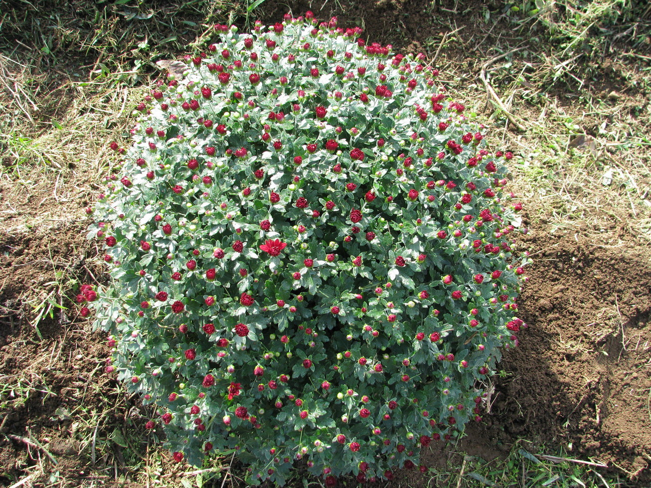 まだ、黄色と赤のつぼみが開き始めの段階ですが、今後「黄」→「赤」→「白」→「ピンク」の順に花が開いていきます。近年の様子では、開花の最盛期は、11月中旬頃になるものと思われます。 |