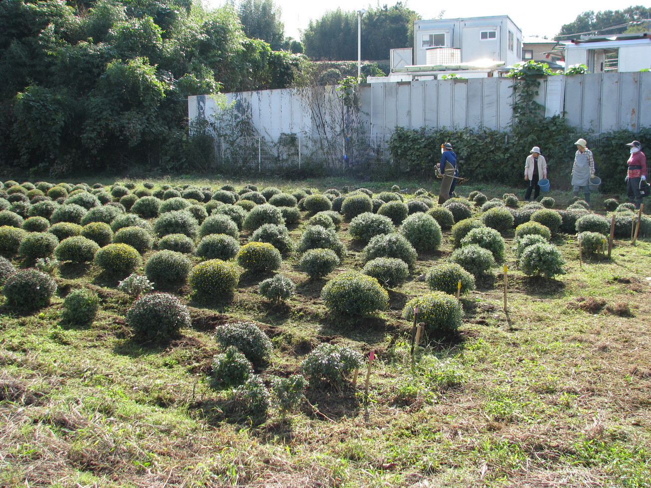 本日、「土屋菊づくり愛好会」「土屋小学校」「土屋公民館」共同運営のざる菊園が開園しました!(土屋小学校入口交差点前)
