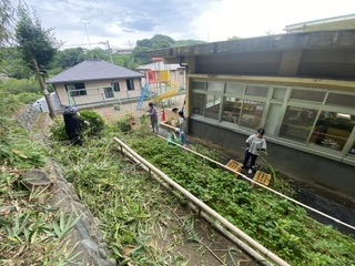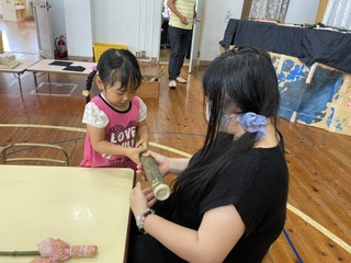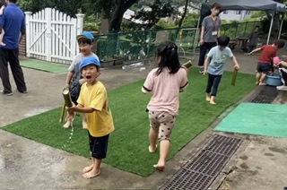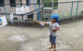 少し遅くなりましたが、6月14日に行った「竹の水鉄砲作り」の活動についてご報告させて頂きます。 今回の「竹の水鉄砲作り」は土屋地域で活動されている「竹あかり」さんにご協力をいただいて実施しました。「竹あかり」さんとはこれまでも土屋の自然物を使った制作活動や栽培活動等、園の教育活動に色々なかたちでご支援をいただいております。 今回も園の「竹で水鉄砲を作りたい!!」の声を受け止めていただき、竹の準備やうまく水を飛ばすための思案を一緒にしていただき、この日を迎えました。 親子で「竹の水鉄砲作り」を作るまでの過程を確認し、いざ準備スタート。 凧糸を巻きつけたり、水を飛ばす穴を開けたりする作業を親子で行いました。 いざ準備ができると水鉄砲の試し撃ちタイム💦がスタート!! 興奮した様子で水を汲み入れ、勢いよく押し出すと綺麗な子を描いて水がとんでいきます。 「僕の水鉄砲、うまく水が出たよ!!💦」 「うまく的に当たった!!💦」 興奮した子供達は全身に水がかかっているのも気にせず、夢中になって水遊びを楽しみました。 今回の活動を通して、竹をつかった昔遊びの楽しさに気づいたり、日頃関わりの少ない地域の方や保護者との触れ合いを十分楽しむ事ができました。 「竹あかり」さん、今回も貴重な機会を作っていただき、ありがとうございました。 |