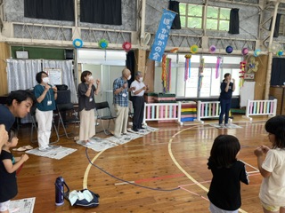 令和5年度が始まって、2ヶ月半が過ぎました。 この日は入園・進級した子供達の幼稚園での様子を見ていただくことや親子で触れ合いを楽しみながら普段できない体験を楽しむことをねらいに、親子保育参加日を行いました。 保護者や祖父母、園児の兄弟関係も参加してお楽しみの体験活動を楽しみました。 親子遊びの時間には・・・ ・親子で運動遊び💪 ・親子で七夕飾りづくり🎋 ・親子で絵本タイム📚 ・竹水鉄砲的当て💦 ・野菜の収穫体験🫑 上記の好きなコーナーを家族で回る子供達はとても嬉しそうでした。 「見てみて、、、こんなことできるようになったんだよ」 「見てみて、、、これ僕が作ったんだよ」 普段、自分の楽しんでいることやできるようになったことをみてもらいたい子供達。お家の人に認められたり、褒められたりすることは何より嬉しいことですね。子供達はとても嬉しそうでした。 後半は評議員さんにもご参加いただき、新聞紙ジャンケンや触れ合いゲームを楽しみました。 半日という短い時間でしたが笑顔の花がたくさん咲いた素敵な1日になりました。 |