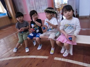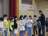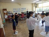 今回は、「新聞紙じゃんけん」をしました。 新聞紙にのってじゃんけんをして、じゃんけんに負けたら新聞紙を半分におって乗ります。 乗れなくなったらおしまいです。 「勝った〜」「負けた〜」「〇〇さん、あと1回負けたら大変だ。」「やばい‼」「がんばれ〜」など声をかけ合っていました。 10分間の活動でしたが、笑顔と歓声いっぱいの時間になりました。 6年生、企画と運営ありがとうございました。 | |