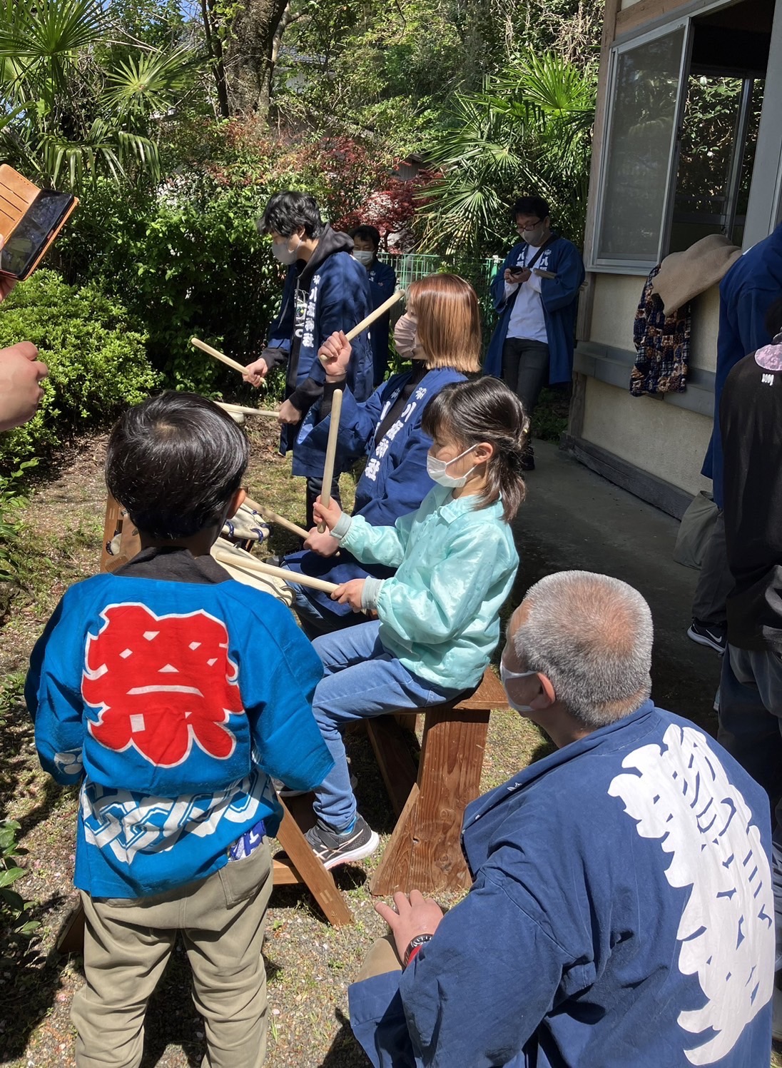 4/9(日)惣領分 八坂神社の祭礼が行われました。 規模縮小で祭礼のみでしたが、子供たちが太鼓体験出来るイベントを太鼓連が企画して下さり参加しました。太鼓の楽しさを知った子供達は来年活躍してくれると思います! | |