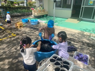 子ども達:「上手くできたよ」「これ全部やりたいなぁ」 :「僕達がやるから任せて」「先生は見てていいよ」 :「みんなに見せたいなぁ」「種も僕たちが植えるよ」