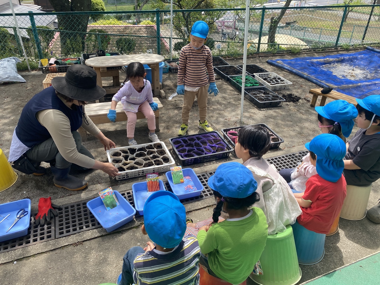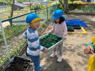 【平塚市立土屋幼稚園】<ぽっかぽかファーム> 野菜の種を蒔こう 4月中旬