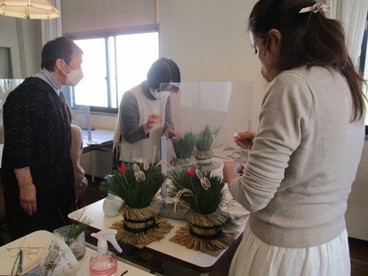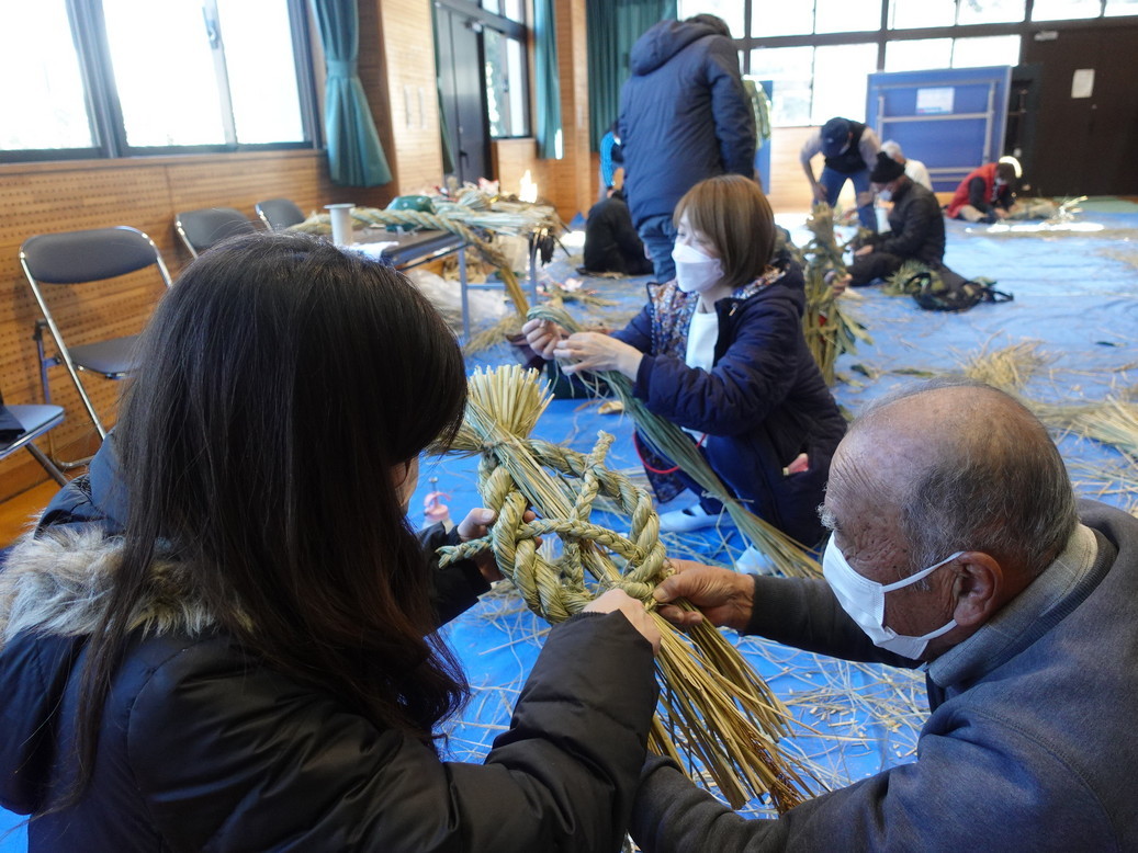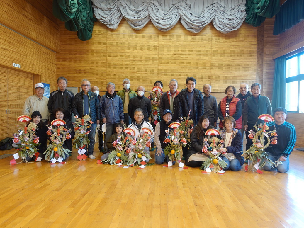 令和4年12月25日(日)、年末恒例の“おかざり教室”を実施しました。今年もお飾りづくりの達人、吉川雅己さん、安池直治さん、岩本俊藏さん、安池昭夫さんを講師に迎え、みんなで楽しくお飾りをつくりました