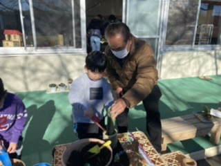 土屋幼稚園では年間を通して、地域の方々とのやりとりを大切にしております。 この日は、自分だけの門松作り🎍を楽しみました。 出来上がった作品を見て満足気に微笑む子供達。 作り終えた子ども達からは 今回作った門松は持ち帰りお正月に飾る予定です。 皆様、どうぞ良いお年をお迎えください。 |