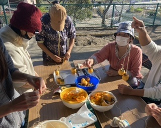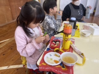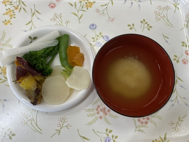 11月はブロッコリー、サツマイモ、カブ、人参、スナップエンドウ、大根を 「この野菜美味しい」 年間を通して、野菜の収穫体験や試食を繰り返してきたことで、子供達は野菜に興味関心を持ち、食べられる野菜も増えてきました。 |