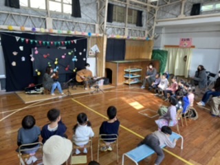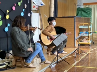 今回も「参加するみんなが楽しめるように」との演奏者の思いから、 当日は美しいバイオリンの音色♪やリズミカルなギターのサウンド♪を アンコールでも奏でていただいたアナと雪の女王の挿入歌「レット・イット・ゴー」では歌ったり、踊ったりリズムに合わせて楽器を鳴らしたりして、一人一人思い思いの参加の仕方で音楽の世界を楽しみました。 |