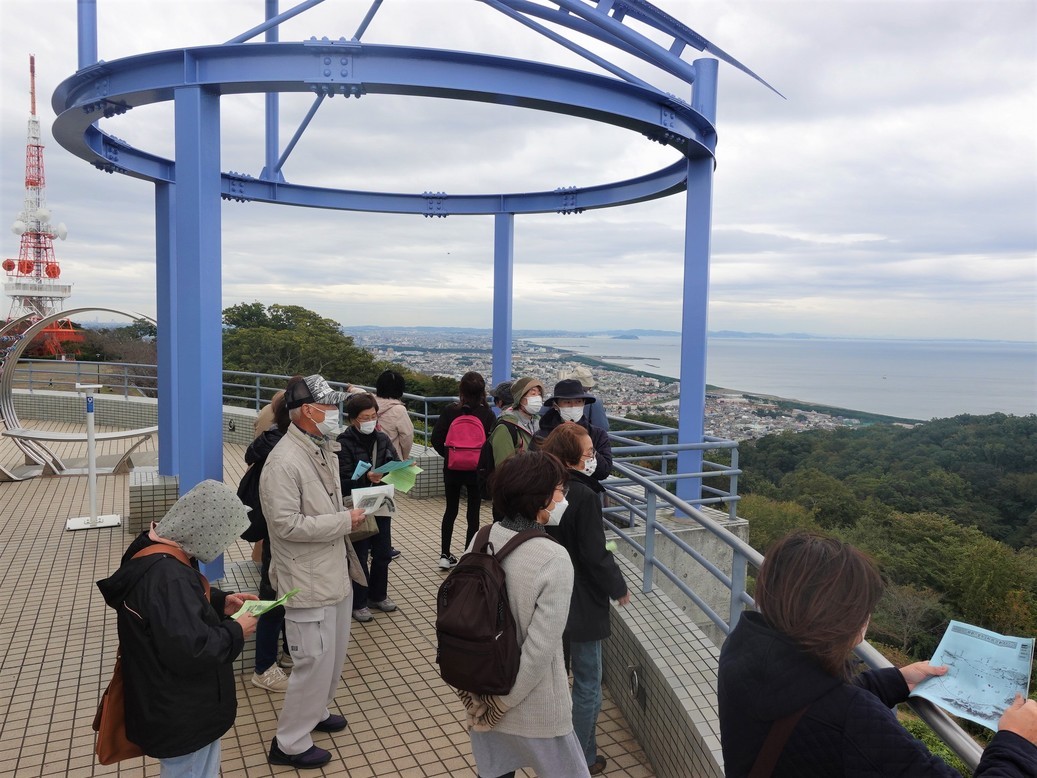 いざ出発 そして再びバスに乗り、今度は車窓から七国峠の供養松と長兵衛茶屋を見学。そして杜鵑山を通り和田合戦へ向かう土屋義清に思いを馳せました 「行こか鎌倉 戻ろか土屋 今も血になくほととぎす 思いみだたる 杜鵑山」という古謡があり、和田合戦に向かう土屋義清はこの地でこの古謡のような心情になったと伝えられています。 そしてバスは湘南平へ。道中「七国峠の供養松」の昔話の読み語りも行いました。源平合戦から鎌倉時代の動乱を生きた土屋三郎と土屋義清の姿が思い浮かぶような素晴らしい昔話でした 湘南平では、曽我兄弟と虎女に関する史跡の曽我十郎の硯水の池を見学。そして湘南平の展望台から「七騎落ち」や「和田合戦」の軌跡を眺めました 予想以上に大好評で、我ながら本当にいい講座ができたと思います。せっかくなのでもっと多くの人にも聞いてほしいという声もあり、現在対象地区を広げてもう1回やるか検討中です そして開催時期も本当にタイムリーでした |