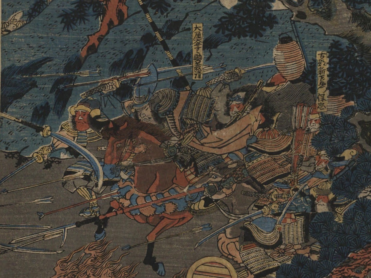 <吾妻鏡(抜粋)> 5月2日申の刻(15〜17時)、和田義盛が一味を率いて御所を急襲した。それに味方したものは嫡男…、その子息…、三男…、四男…、五男…、六男…、七男…である。この他に土屋大学義清、・・・、土肥惟平(土肥実平の孫)、岡崎実忠(真田与一の子)、・・・。 5月3日、長尾景茂と胤景は、土屋義清・土肥惟平に出くわして戦った。そこに胤景の舎弟子童(十三歳)が急いで参上し、兄の陣に加わって武芸を示した。義清らはこれに感心し、彼に対して矢を放たなかったという。 土屋義清・古郡保忠・朝夷名義秀の三騎は轡を並べて四方の兵を攻め、味方の軍士(北条泰時軍)が退散することは数度に及んだ。そこで北条泰時は法華堂の御所に申し上げた。「味方は多勢のたのみがあるものの、決して凶徒の武力は侮れません。再び賢慮を廻らしてください。」。・・・。 この機会に、大学助(土屋)義清が甘縄から亀谷に入った。窟屋堂の前の道を経て、(法華堂の)仮御所に参上しようとしたところ、若宮の赤橋の辺りで、流れ矢に当たり義清は落命した。その矢は北方から飛んできた。これは神の鏑であると評判になった。従僕がこの首を取って寿福寺に葬った。 (義清はこの寺の本願主であるためである。義清は岡崎四郎義実の二男、母は中村庄司宗平の娘である。建暦二年12月30日に大学権助に任じられた。法勝寺九重塔の造営の功という。) 吾妻鏡の中には、上記のとおりたくさんの土屋義清の活躍の記述があります。義清が当時の鎌倉幕府の中では有力な御家人であり、武勇に優れていたことが伺えます。今回の大河ドラマの中で、北条泰時が指揮を執って和田軍を押していましたが、実際には、浮世絵のように土屋義清らが北条軍を押していたのかもしれません。そして、神の鏑に当たらず仮御所にいる実朝を味方にできていれば歴史が変わったのかもしれません。 ■豊國二代 画「和田合戦圖」 この絵は番組後の紀行で紹介され、義清の名もテレビに映りました。 鎌倉殿と土屋氏M「和田合戦〜行こか鎌倉戻ろか土屋〜」 鎌倉殿と土屋氏D「亀谷と土屋氏」 | |
