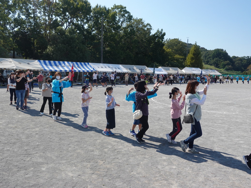 今年は感染対策として、午前中のみの縮小開催となりましたが、雲一つない快晴の中、とても盛り上がりました 今年は中学生が大活躍!選手宣誓から始まり、1000m走への飛び入り参加や、綱引きと宝釣りのお手伝い、非密のキャッチに中学生チームで参加するなど、地区レクを大いに盛り上げてくれました。 今回はコロナ禍ということで、密を避ける“非密”シリーズの自治会対抗種目(玉入れ、綱引き、リレー)や、フラフープリレーなどの新種目もたくさんありました。体育振興会がコロナ禍ならではの面白いルールを考案してくれ、とても盛り上がりました そして最後は校庭いっぱいに大きな輪を作り民踊 自治会対抗は、惣領分と大庶子分の同率1位と思いきや、4自治会みんな優勝という形で幕を閉じました。参加してくれた皆さん、準備から当日の運営、片付けまで協力してくれた役員のみなさん、本当にお疲れ様でした |