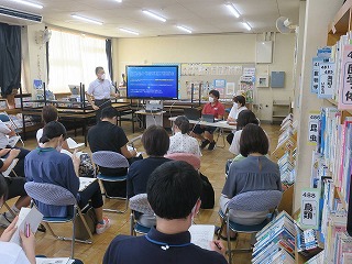 夏休み中の土屋小では、教職員の研修会を実施しています。例年、土沢中校区の3校(土沢中・吉沢小・土屋小)で夏季に合同で研修会を行ってきました。しかしながら、コロナ感染症により中止が続き、3年ぶりの開催となりました。今回は、土屋小のSPSの取り組みについて、研修しました。前半では取り組みの様子と校内見学、後半は「夏休み明けの子どもたちの安全について」をテーマに情報交換を行いました。児童・生徒による「安全点検」や「安全に対する呼びかけ」など教職員だけでなく、子どもたちと一緒に取り組む考え方について研修を深めました。