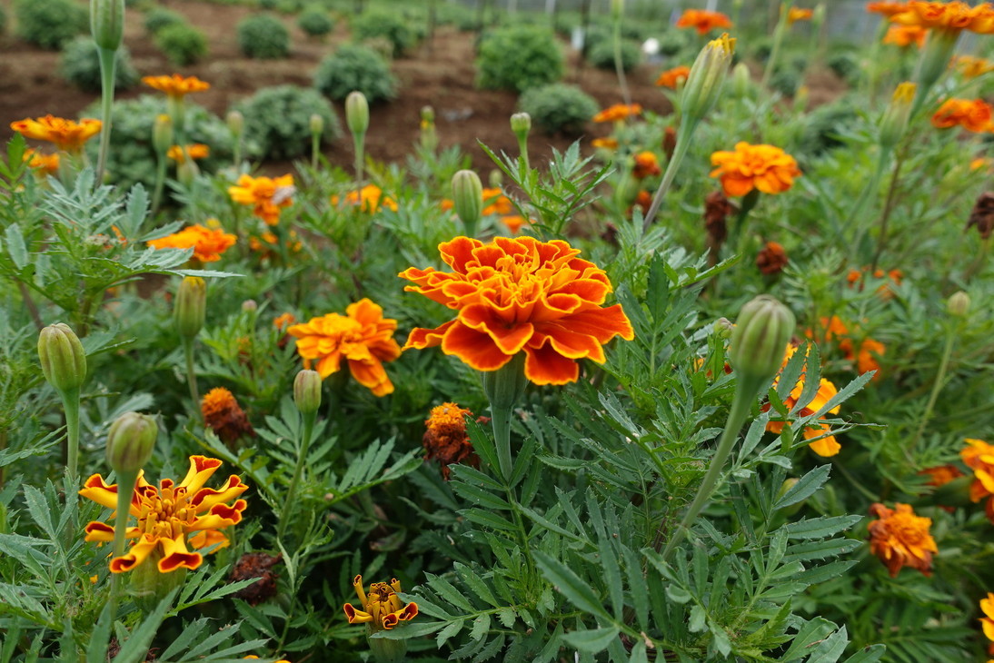 今年も管理機で事前に作間の除草をしてから、株もとの雑草を手作業でとる形で実施しました。今回は比較的涼しく、小学生や高校生の飛び入り参加もあったので、あっという間にキレイになりました♪若者の参加で、菊づくり愛好会のみさんもとても嬉しそうでした 昨年はうまく咲きませんでしたが、今年は順調です 手前側に植えたマリーゴールドも今が見ごろで、オレンジ色のキレイな花が咲いています 次回の除草は、9月22日(木)9:00からです。飛び入り参加お待ちしております💡 |